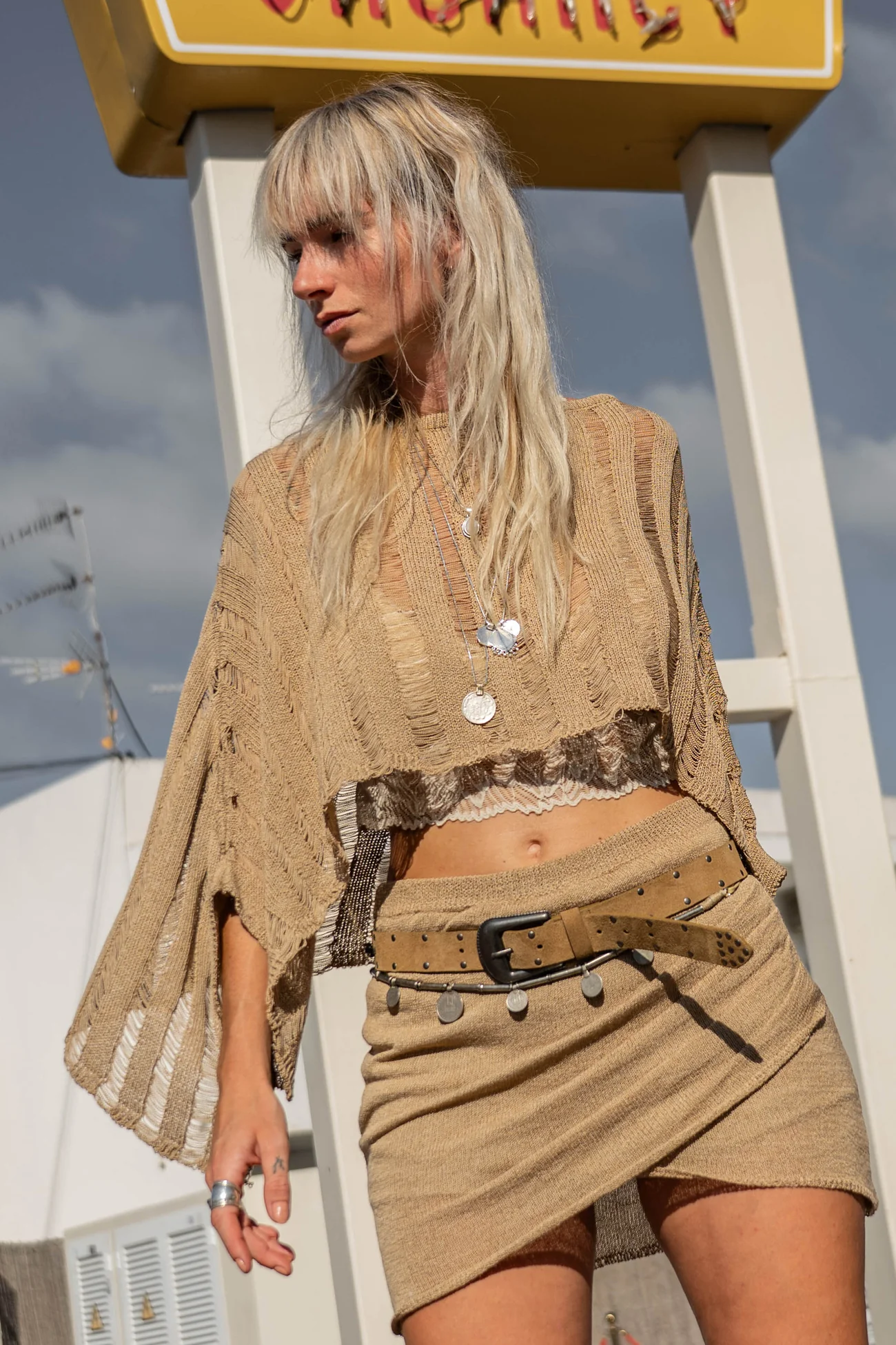 Verder past Laura perfect binnen de Motel Escape sfeer. Stoere silhouetten worden gecombineerd met zachte materialen. Denk aan lace, crochet en washed denim. Voeg een harness bag toe voor extra edge. Zo ontstaat die typische balans tussen western chic en bohemian vrijheid.