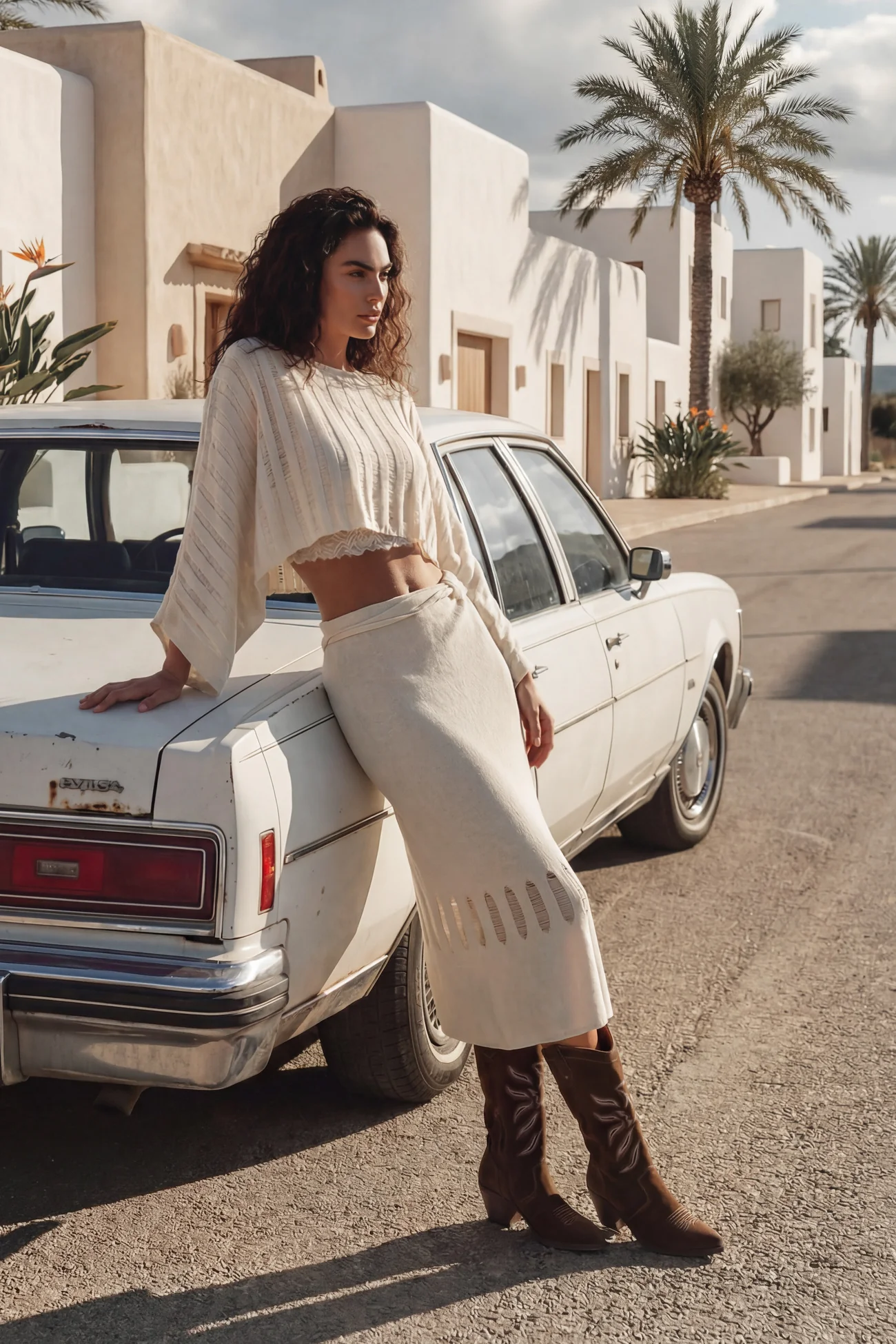 Deze Laura Knitted Wrap Skirt van MOOST Wanted in het off white ademt Ibiza vibes. Gehaakte wikkelrok, goed te combineren met de bijpassende top Perfect te combineren met slippers, een basic top of een lichte blouse. Laat de zomer maar komen – jij bent er klaar voor.