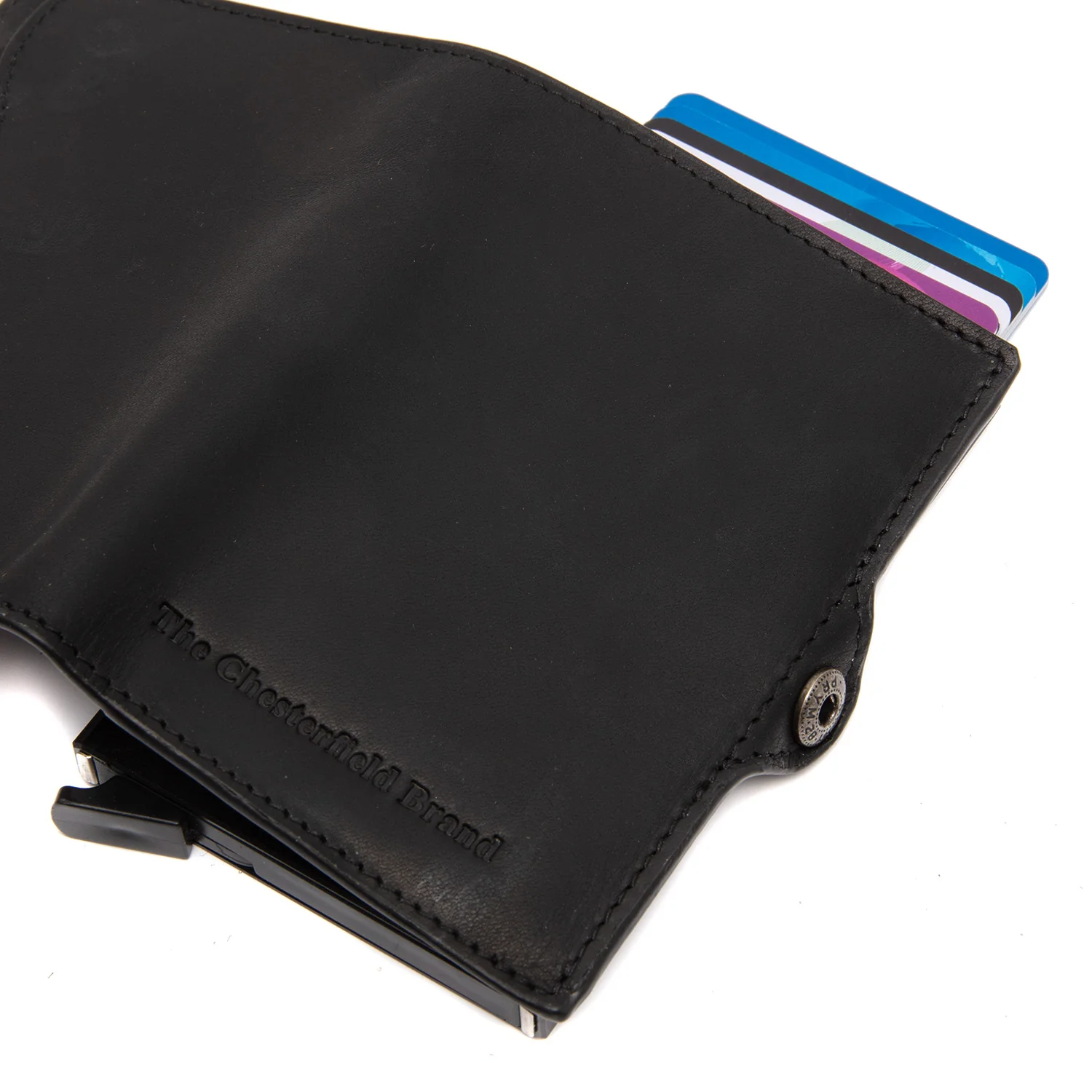Een leren pashouder is bijna een must wanneer je een herenpak draagt! Deze pashouder past perfect in je broekzak of in de binnenzak van je colbert. Deze leren pashouders stralen luxe uit en zijn super praktisch. Naast dat er 6 pasjes in kunnen, is het leren gedeelte ook nog uit te klappen. Wanneer je hem uitklapt, zie je een klein vakje voor briefgeld. Zo kun je naast je pasjes ook altijd nog wat briefgeld meenemen. Verder is de Chesterfield Francis pashouder voorzien van een betrouwbare drukknoop die ervoor zorgt dat hij netjes gesloten blijft.