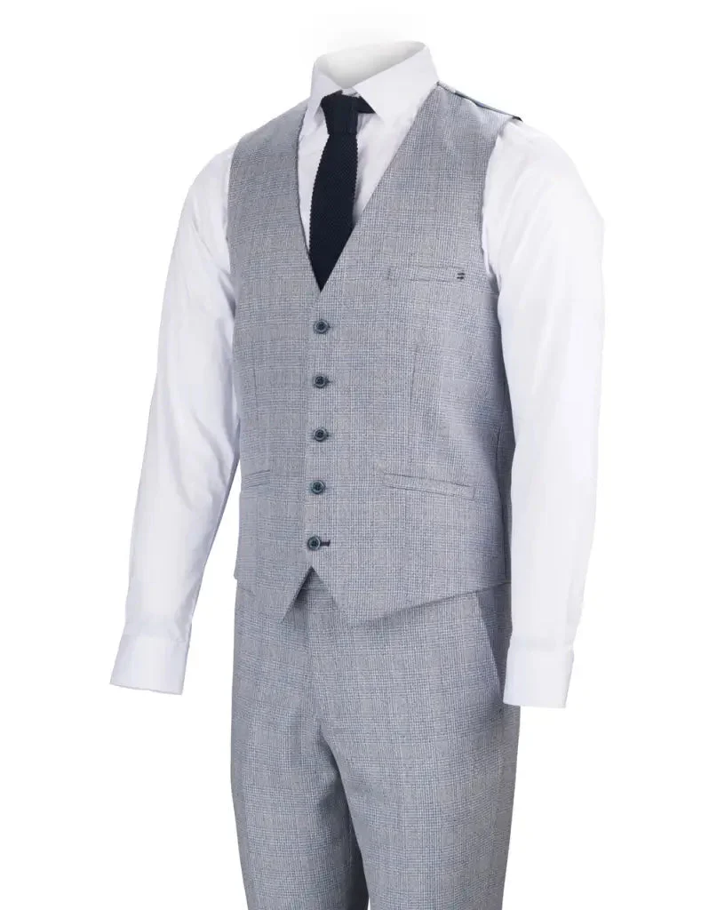 Een lichtblauw 3-delig pak is voor veel mannen een uitstekende keuze voor de zomer. Het Cavani Caridi sky blue pak valt direct op door de unieke kleur, hoogwaardige afwerking en het veelzijdige ontwerp. Dit driedelige kostuum bestaat uit een slim fit colbert, een bijpassende gilet en een stijlvolle pantalon. Elk onderdeel straalt een frisse, moderne uitstraling uit en laat zich makkelijk aanpassen aan verschillende gelegenheden.