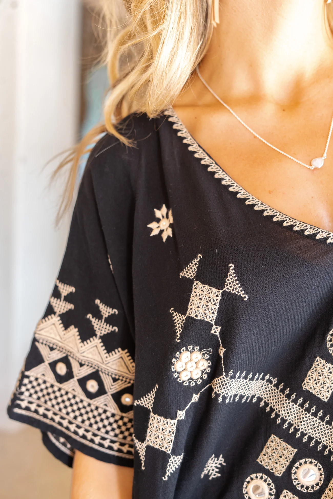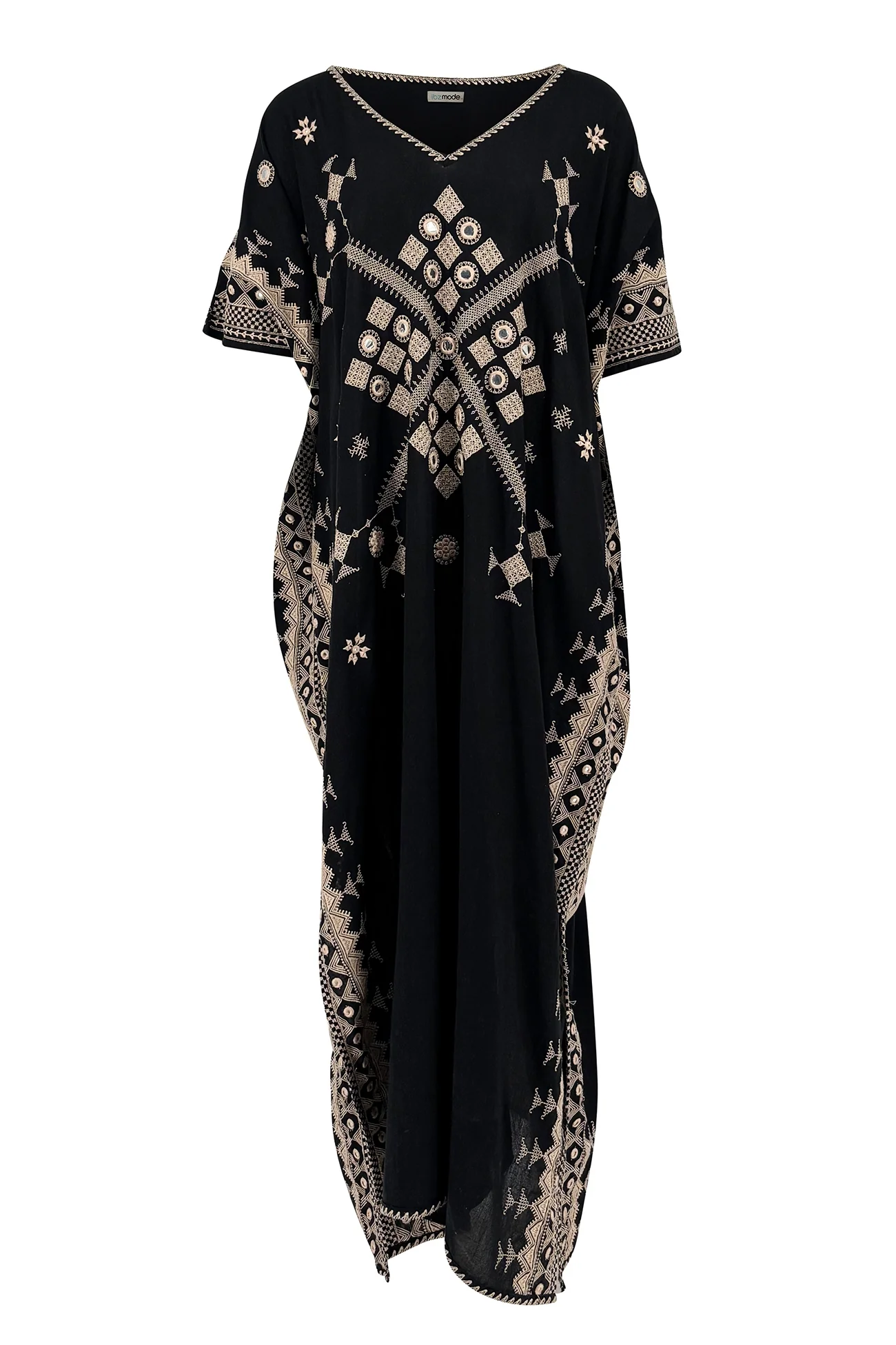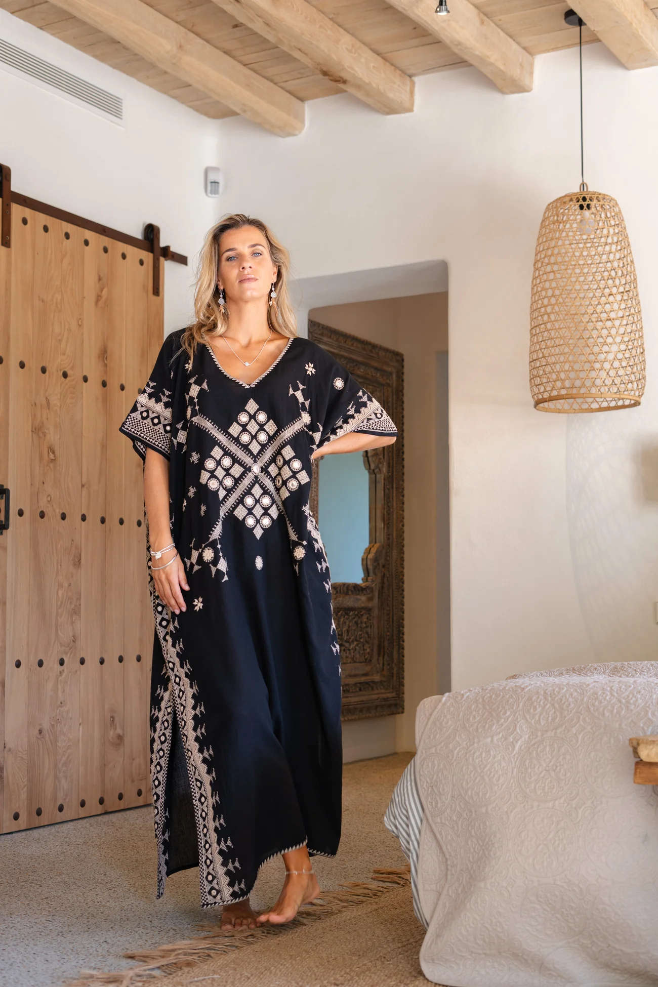 Vervolgens is deze lange kaftan ideaal voor beachclub looks. Overdag draag je Silla Sundara Black met platte sandalen en een luxe strandtas. Zo schuif je moeiteloos aan voor een lange lunch aan zee. De pasvorm blijft comfortabel, zelfs tijdens warme middagen. Daardoor voel je je ontspannen én stijlvol tegelijk.