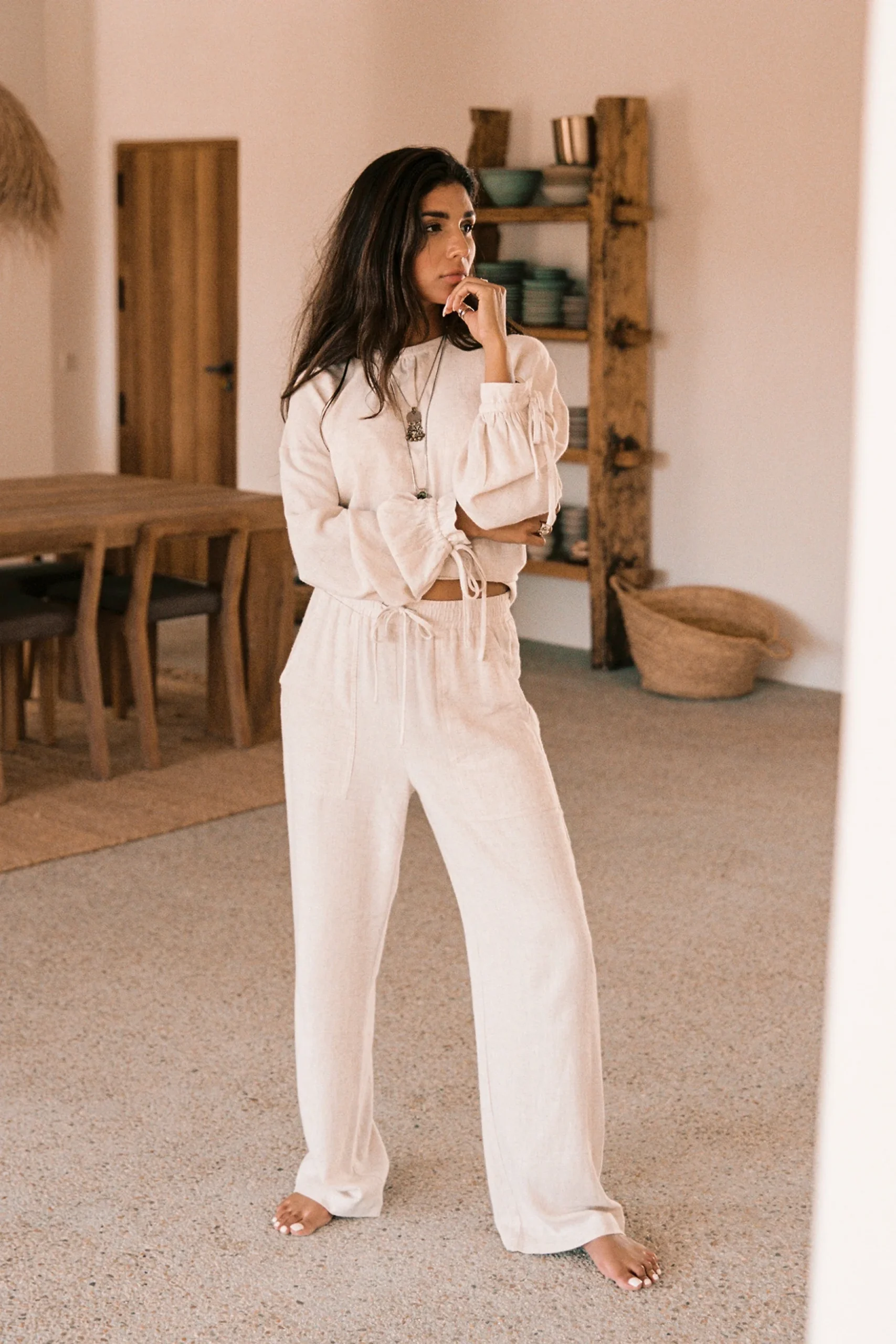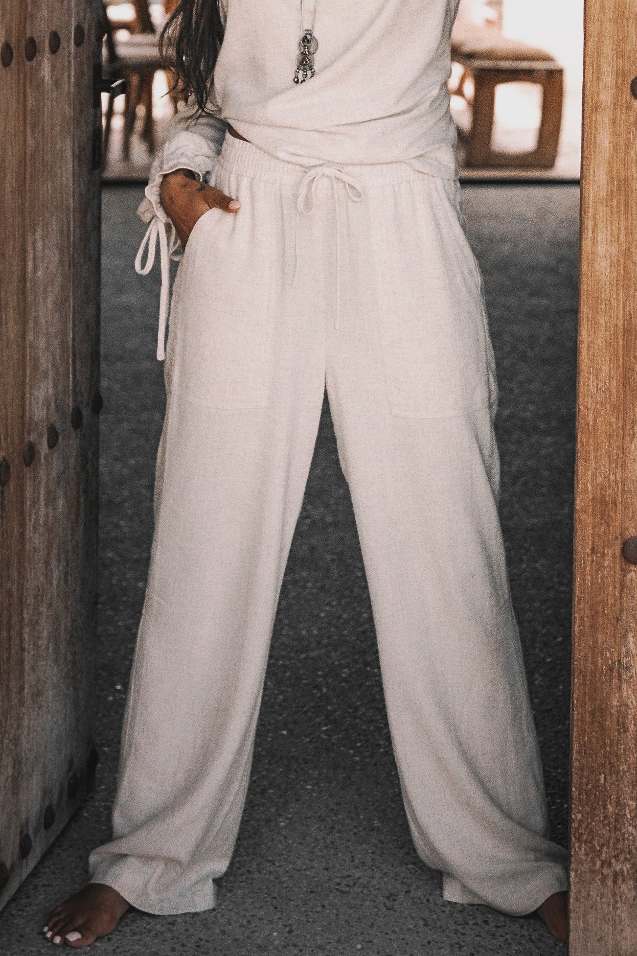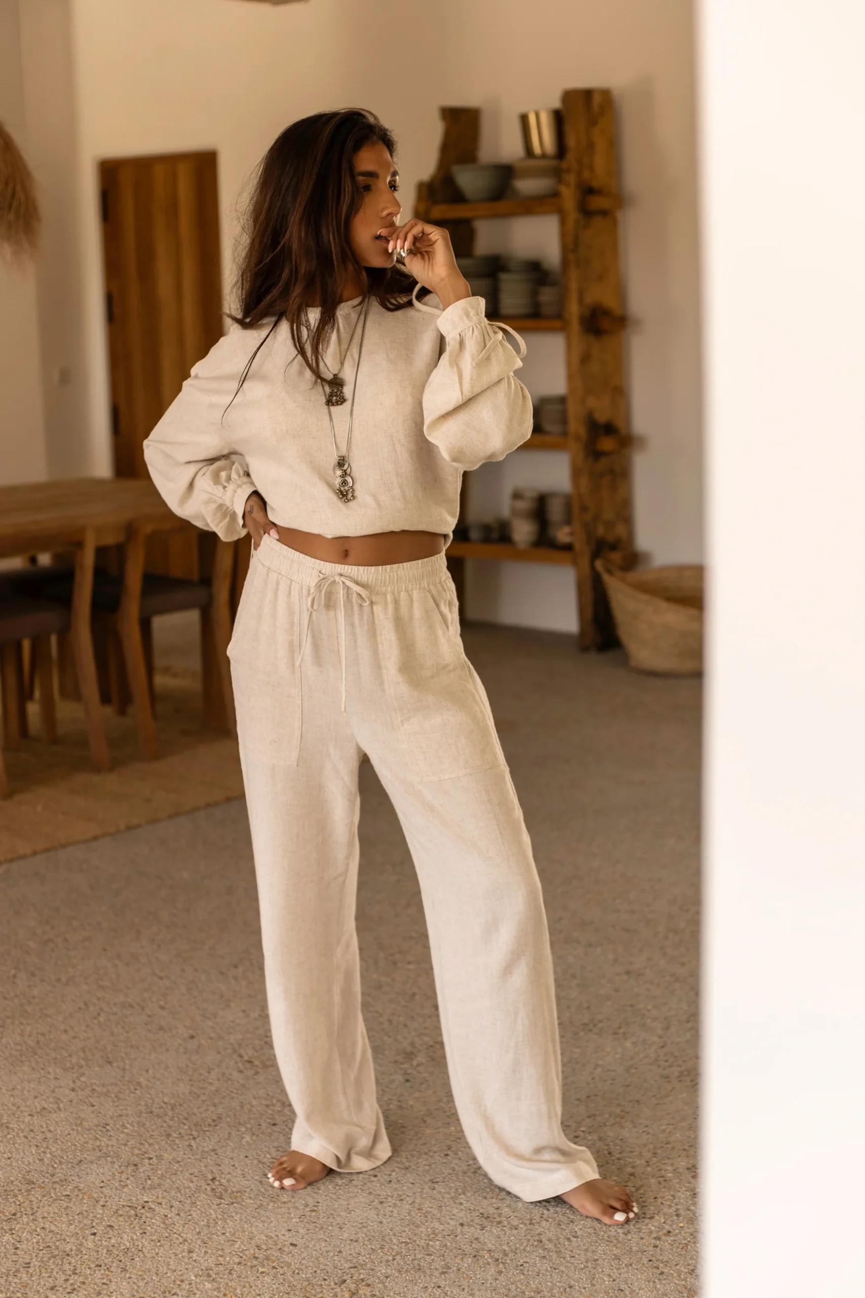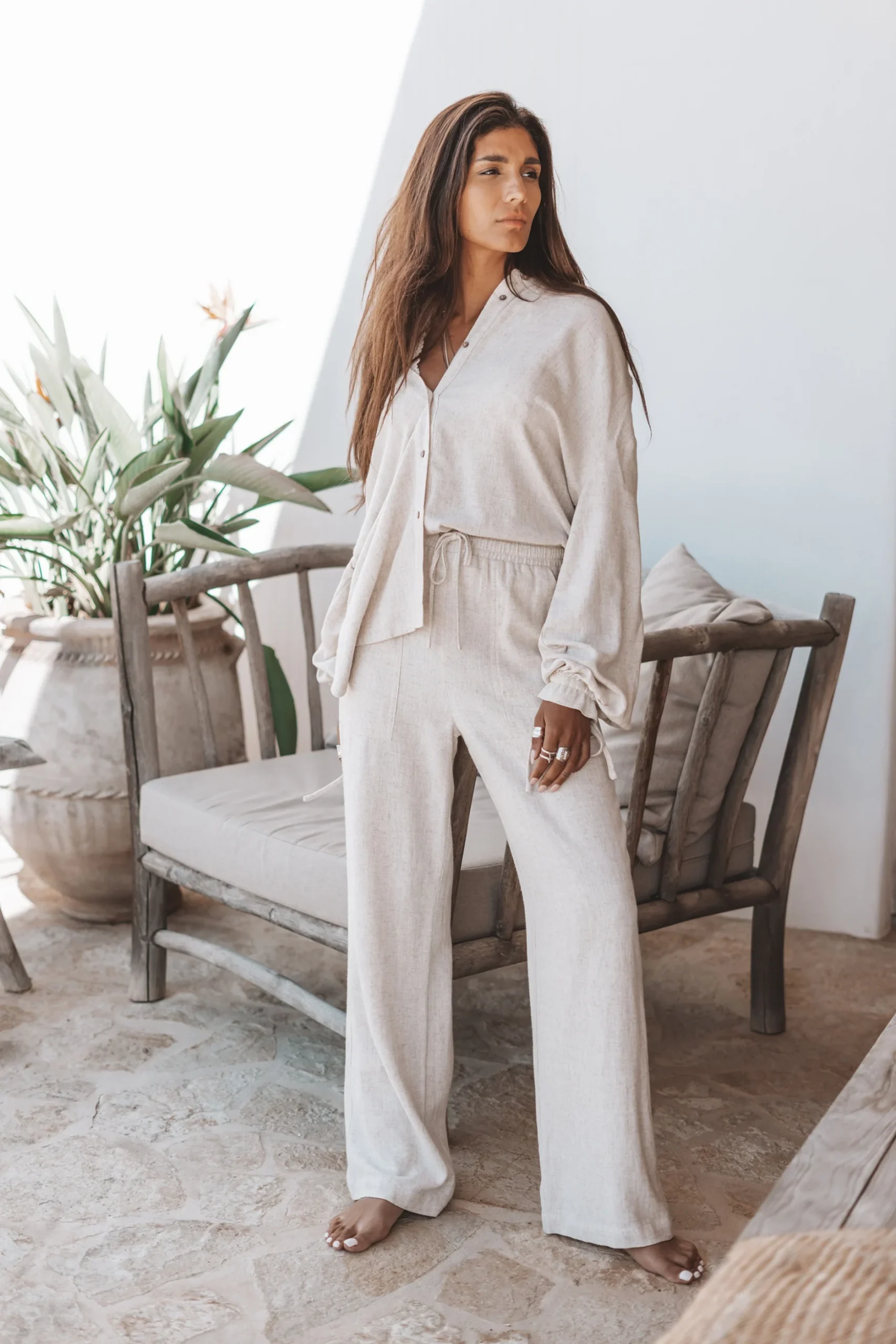 Creëer jouw ultieme zomerse look met de Lyana linen pants in de kleur light beige. Linnen broek, elastische band in de taille, kan worden aangetrokken en worden gestrikt, heeft steekz Het natuurlijke materiaal zorgt voor een luchtige feel. Shop nu bij ibizamode en straal deze zomer in stijl.
