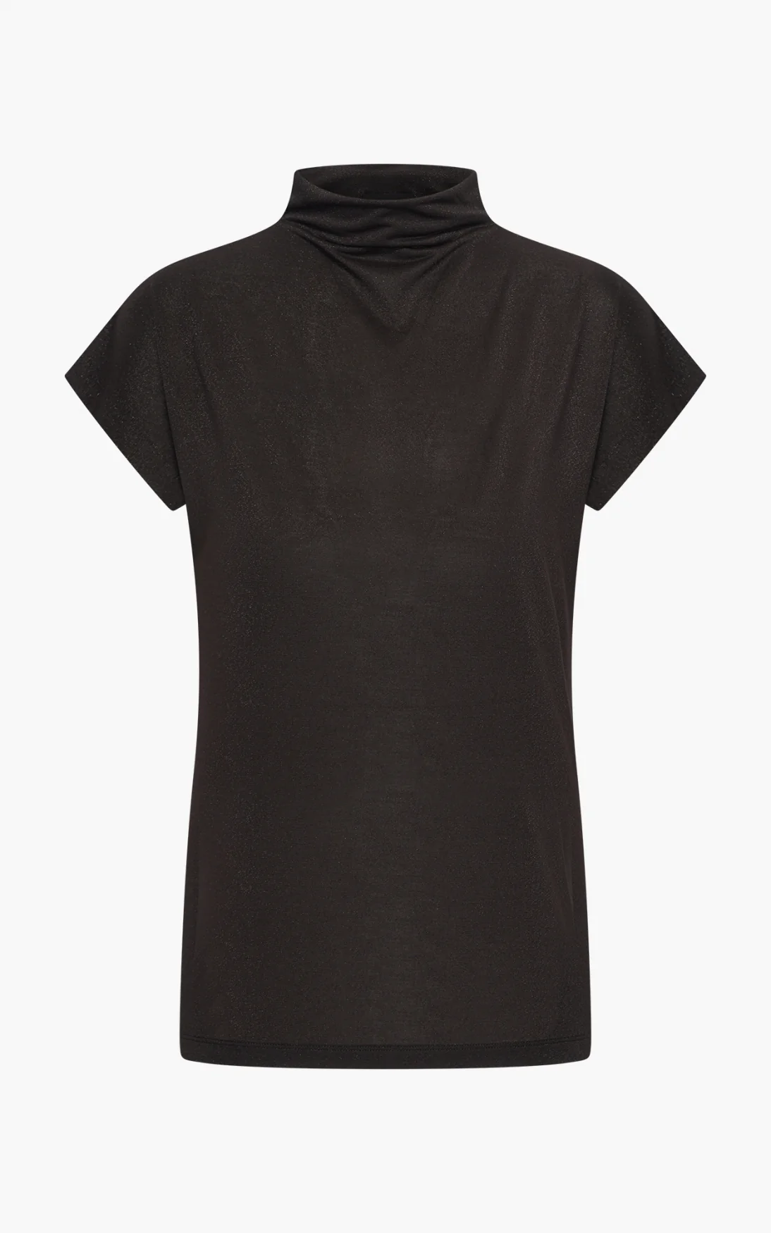 De Mandy top is dé basic die niet mag ontbreken in je garderobe. Met zijn hoge hals, korte mouwen en lange fit vormt hij de perfecte basis voor eindeloze combinaties.
