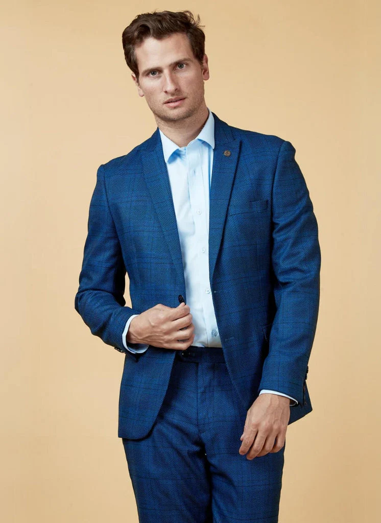 Voor een formele look draag je het Check Jerry Blue colbert met de bijpassende broek en het vest uit de Jerry collectie. Combineer het met een wit of lichtblauw overhemd voor een frisse uitstraling. Voeg een elegante stropdas toe in een neutrale kleur en kies voor nette zwarte of donkergrijze schoenen. Dit maakt het colbert ideaal voor zakelijke bijeenkomsten, bruiloften of andere formele evenementen waar je een verzorgde indruk wilt maken.