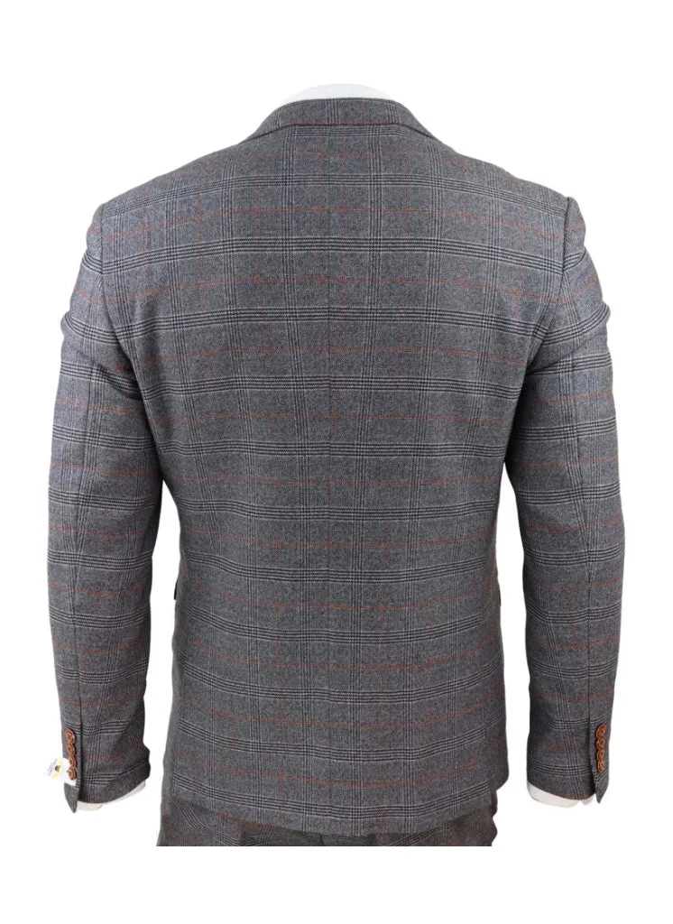 De Jenson Grey spreekt boekdelen met zijn ruitpatroon dat klassieke charme uitstraalt. De notch lapel draagt bij aan de formele uitstraling, terwijl de dubbele backvent aan de achterkant zorgt voor een moderne touch en extra bewegingsvrijheid. De bruine knopen contrasteren prachtig met de grijze kleur van het colbert en versterken de algehele exclusiviteit.