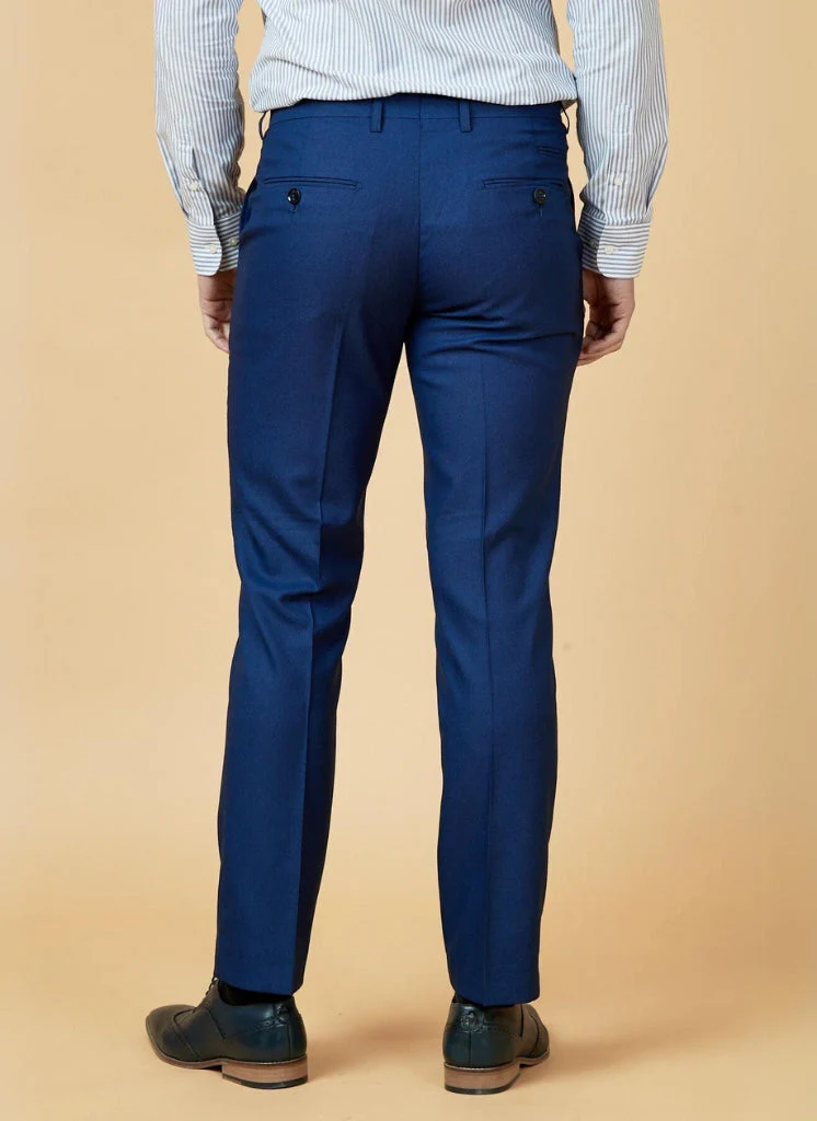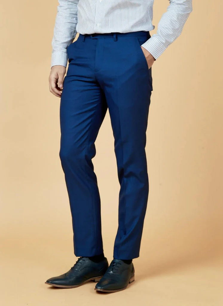 Voor een formele look combineer je de pantalon met een wit overhemd en de bijpassende colbert uit het driedelige Danny Royal Blue kostuum van Marc Darcy. Voeg een zwarte stropdas toe voor een klassieke afwerking. Als je voor een wat minder formele, maar nog steeds nette uitstraling wilt gaan, kun je de pantalon combineren met een lichtblauw overhemd en bruine leren schoenen.