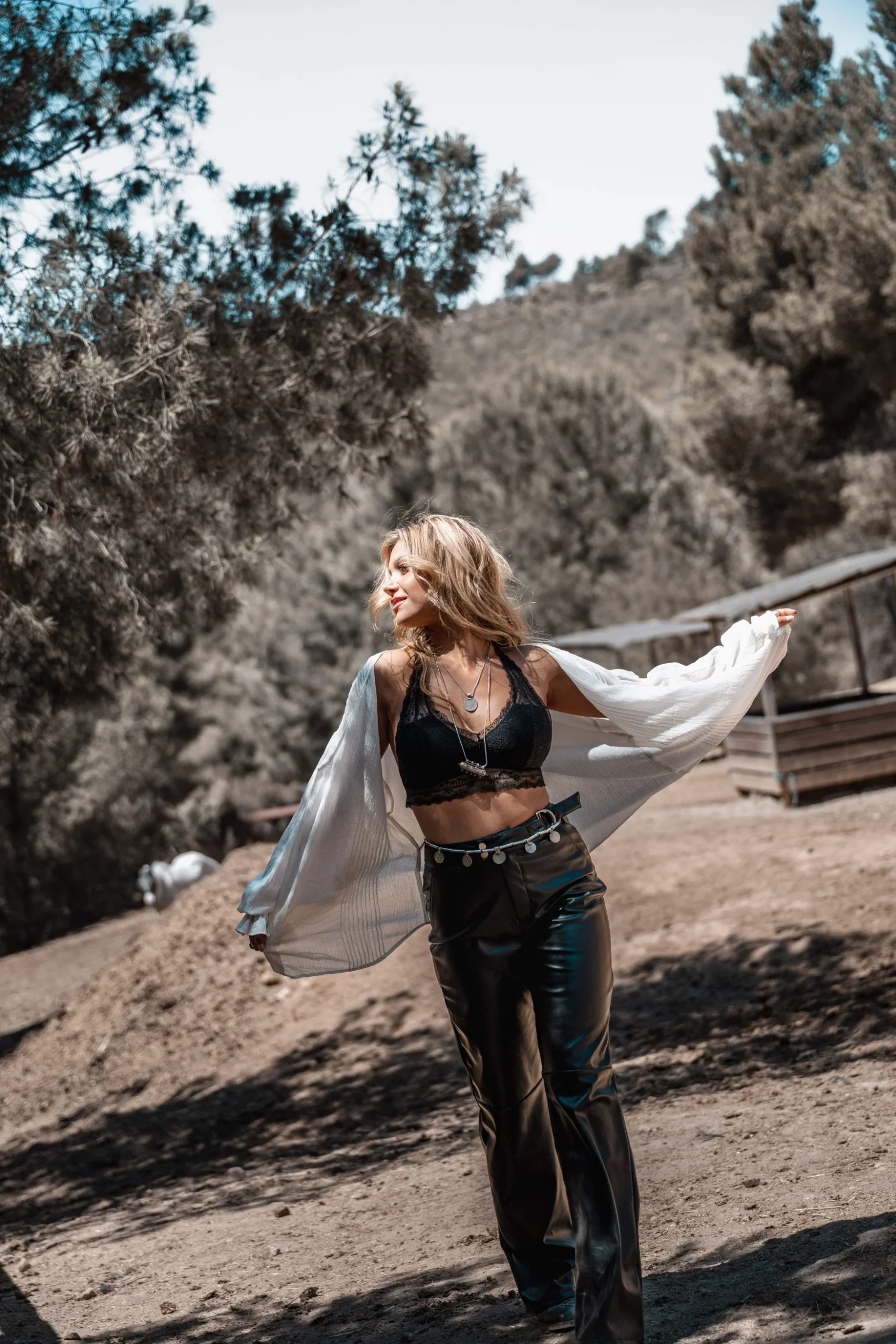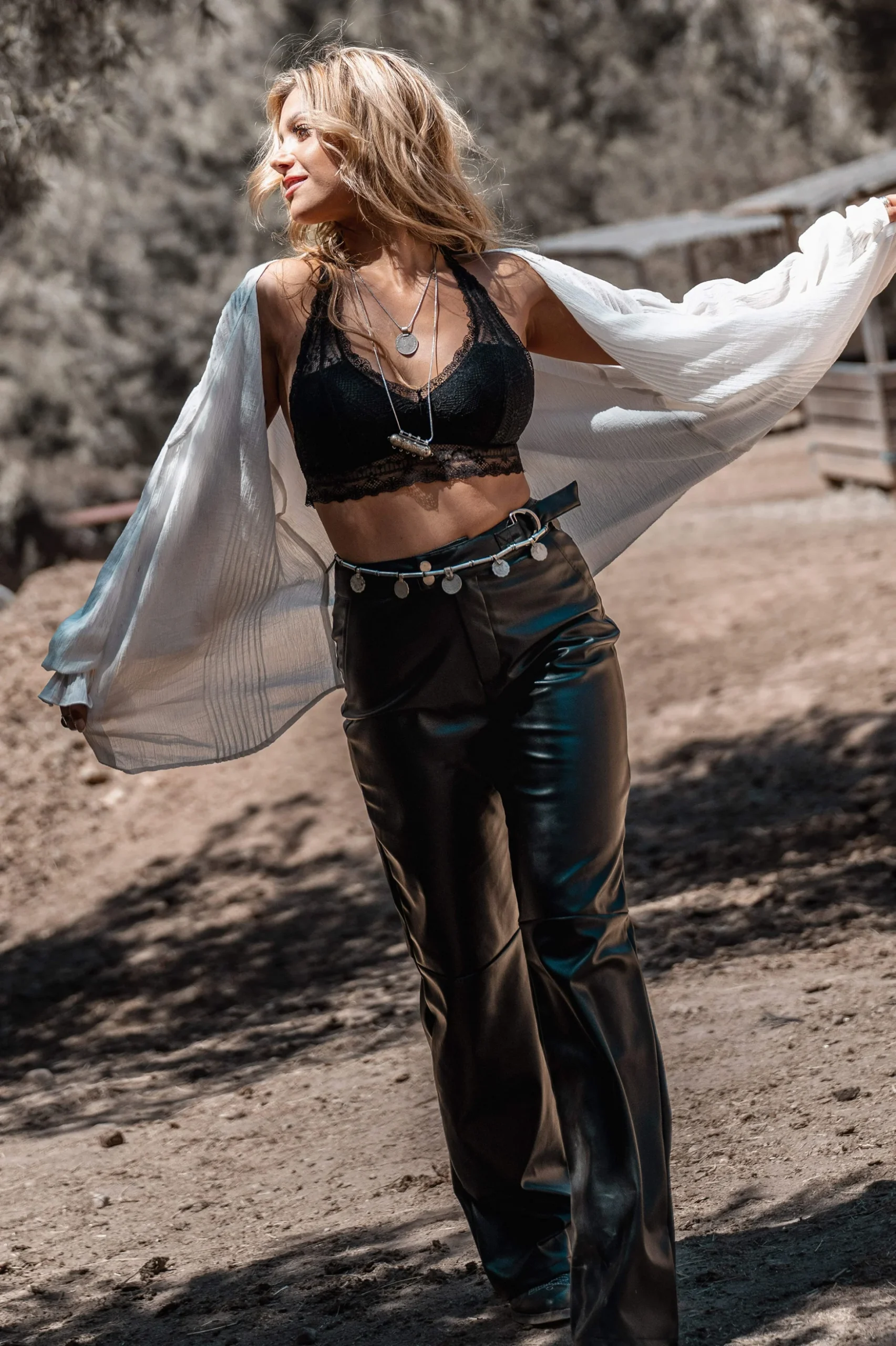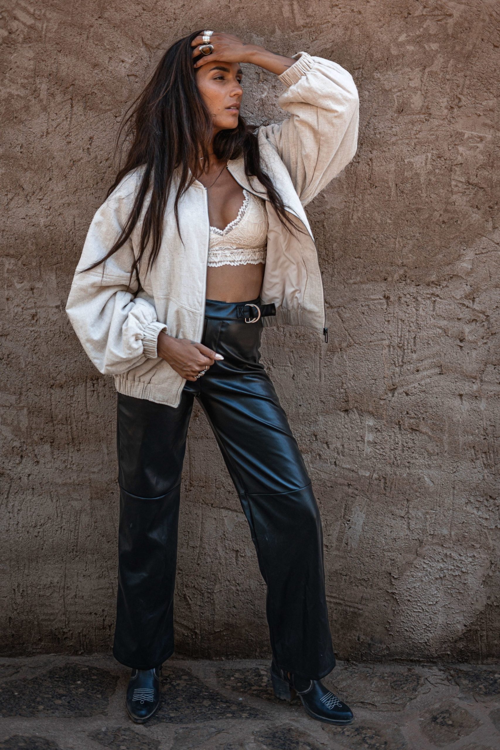 Creëer jouw ultieme zomerse look met de Maud Western PU Pants in de kleur black. PU leder broek, te verstellen in de taille, wide leg fit Voeg deze must-have toe aan je zomergarderobe.