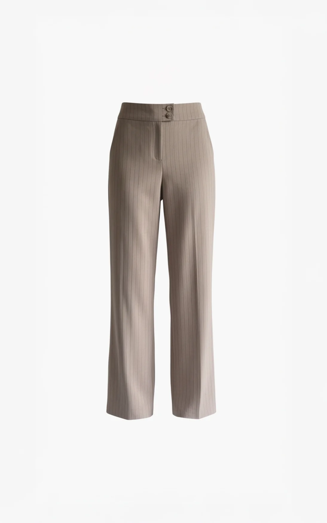 De Moos trouser is een elegante broek met een subtiel grey stripe detail. De straight leg pasvorm geeft een rustige belijning, terwijl de stof soepel en zacht aanvoelt.