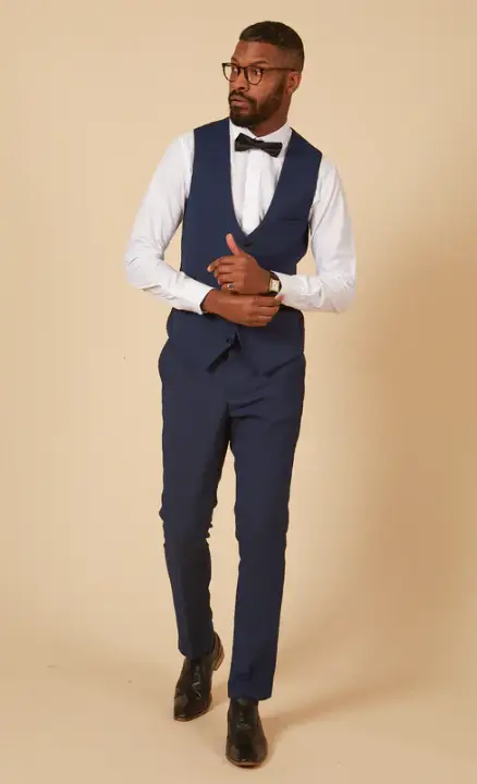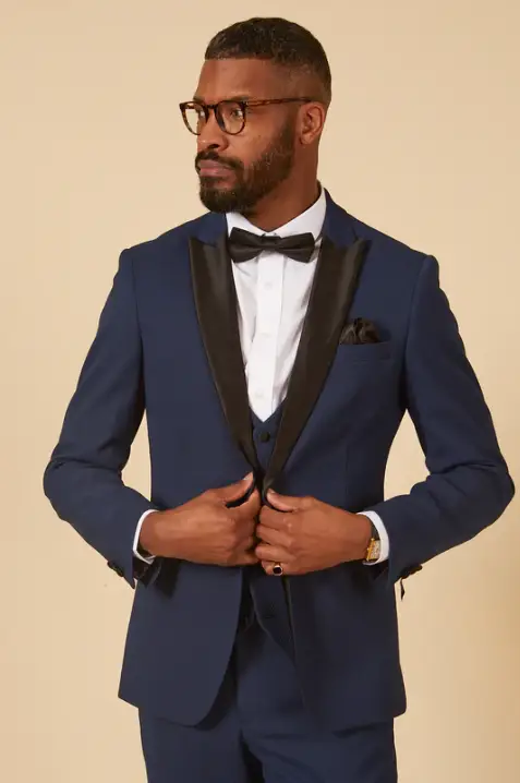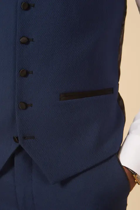 Op zoek naar de perfecte smoking voor een formele gelegenheid? Zoek niet verder dan onze prachtige Navy smoking van Marc Darcy, bestaande uit drie delen. Het is de ideale keuze voor mannen die er stijlvol en verfijnd uit willen zien, zonder aan comfort in te boeten.