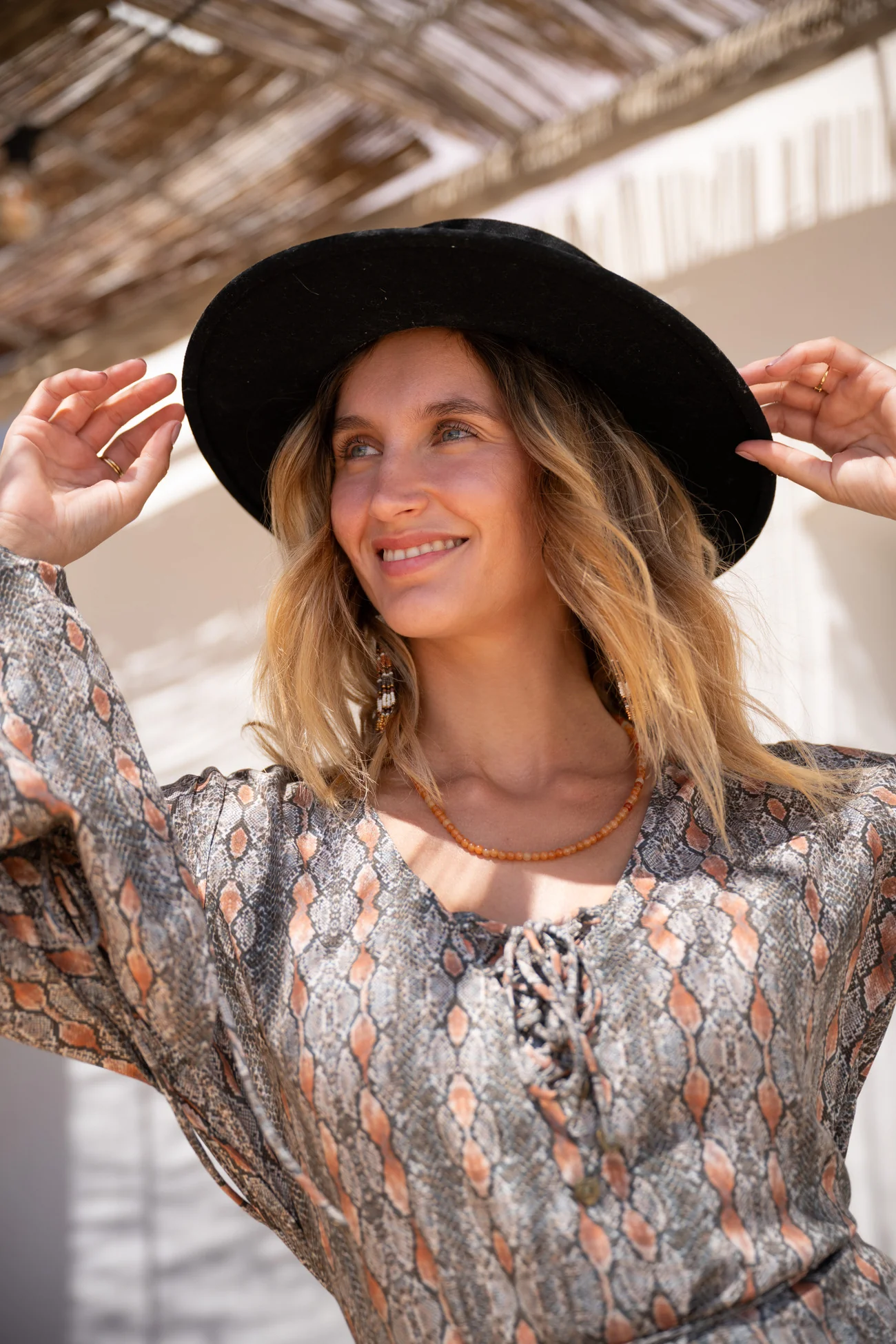 Upgrade je winterlook met de prachtige Necklace Sol Y Arena Stones. Deze elegante ketting is perfect voor het herfst/winterseizoen van 2025. De glinsterende stenen in warme tinten geven een vleugje glamour aan elke outfit. Of je hem nu draagt naar een feestelijke gelegenheid of gewoon naar je werk, deze ketting zal zeker de aandacht trekken. Voeg wat extra sparkle toe aan je sieradencollectie met deze eyecatcher.