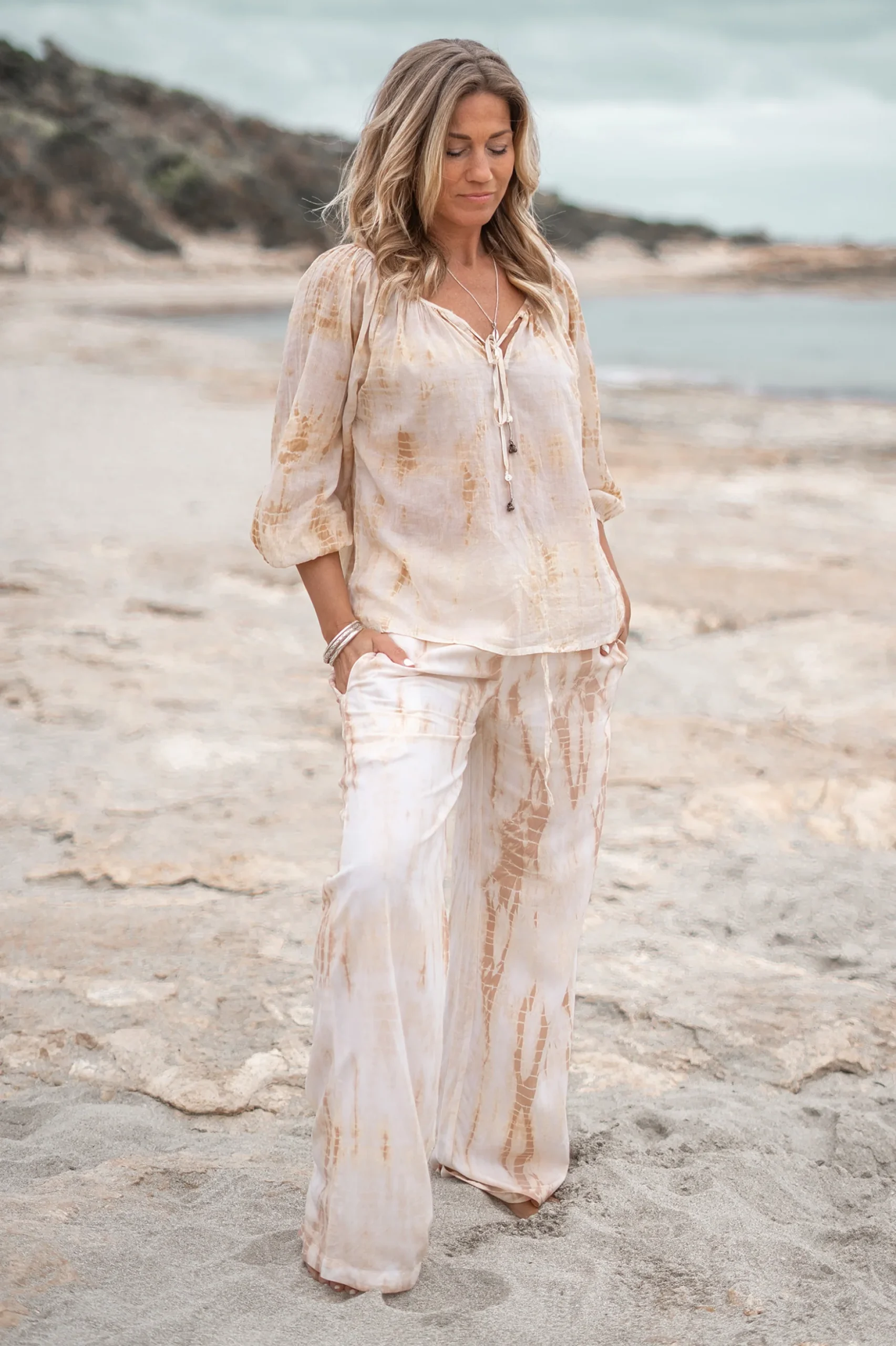 Met de Pantalon Dario Tie Dye van ibzmode ben je klaar voor elke summer getaway. Elastische band aan de bovenzijde, los vallende pijpen, te verstellen met de touwtjes, luchtige stof Het natuurlijke materiaal zorgt voor een luchtige feel. Bestel snel en geniet van de bohemian lifestyle, elke dag opnieuw.