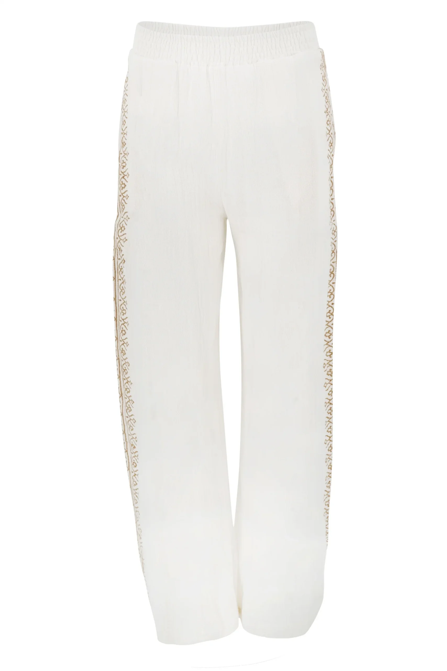 Op zoek naar een item met bohemian flair? Dan is de Pantalon Tonia Scorva White van ibzmode jouw match. Met de hand gestempeld dessin, heeft steekzakken, heeft een elastische band in de taille Het natuurlijke materiaal zorgt voor een luchtige feel. Voeg deze must-have toe aan je zomergarderobe.