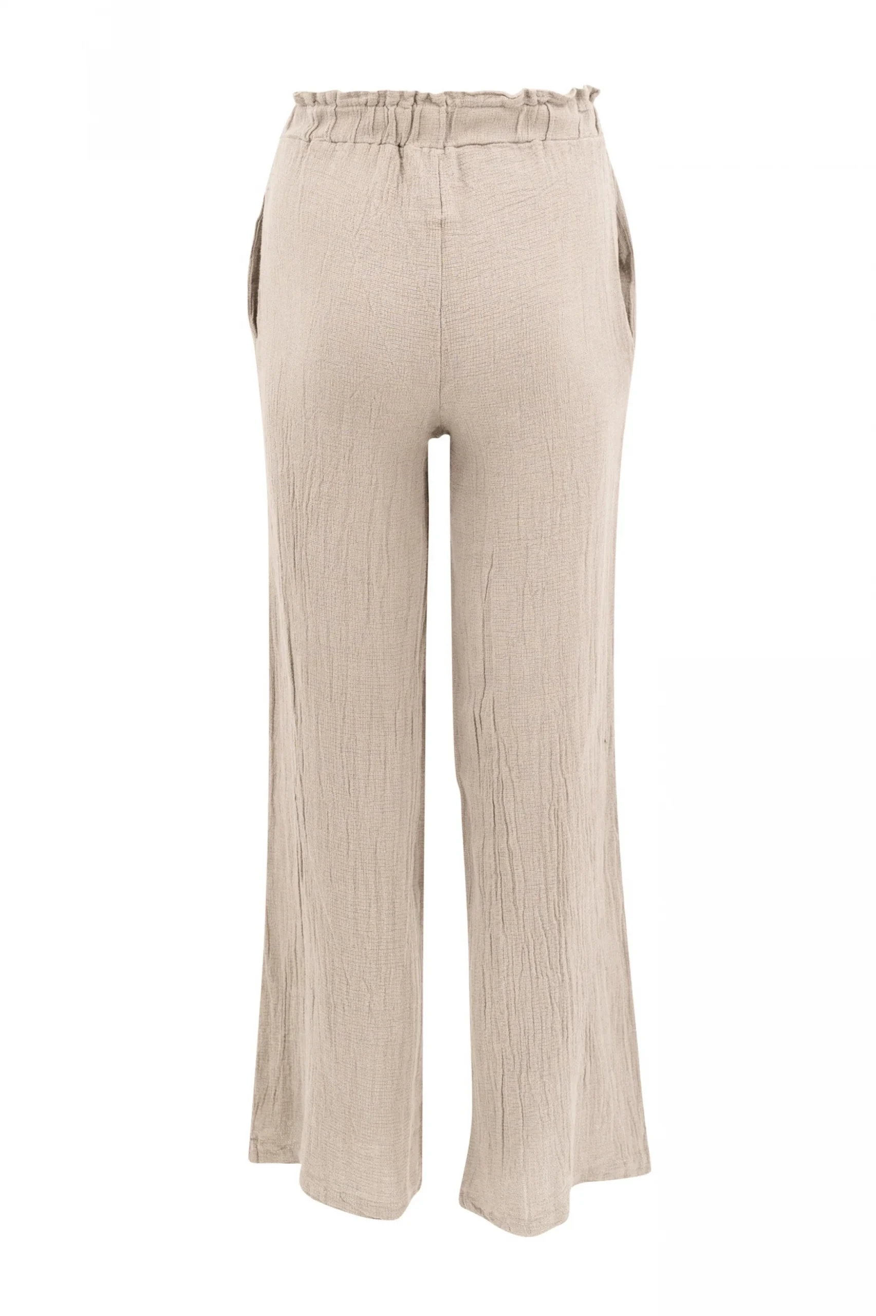 Ervaar het comfort van de Pantalon Zora Linen Sand, perfect voor je zomerse garderobe. in de kleur sand Gemaakt van 50% linnen, 50% katoen – luchtig en natuurlijk. Perfect voor een dagje uit of een diner aan zee.