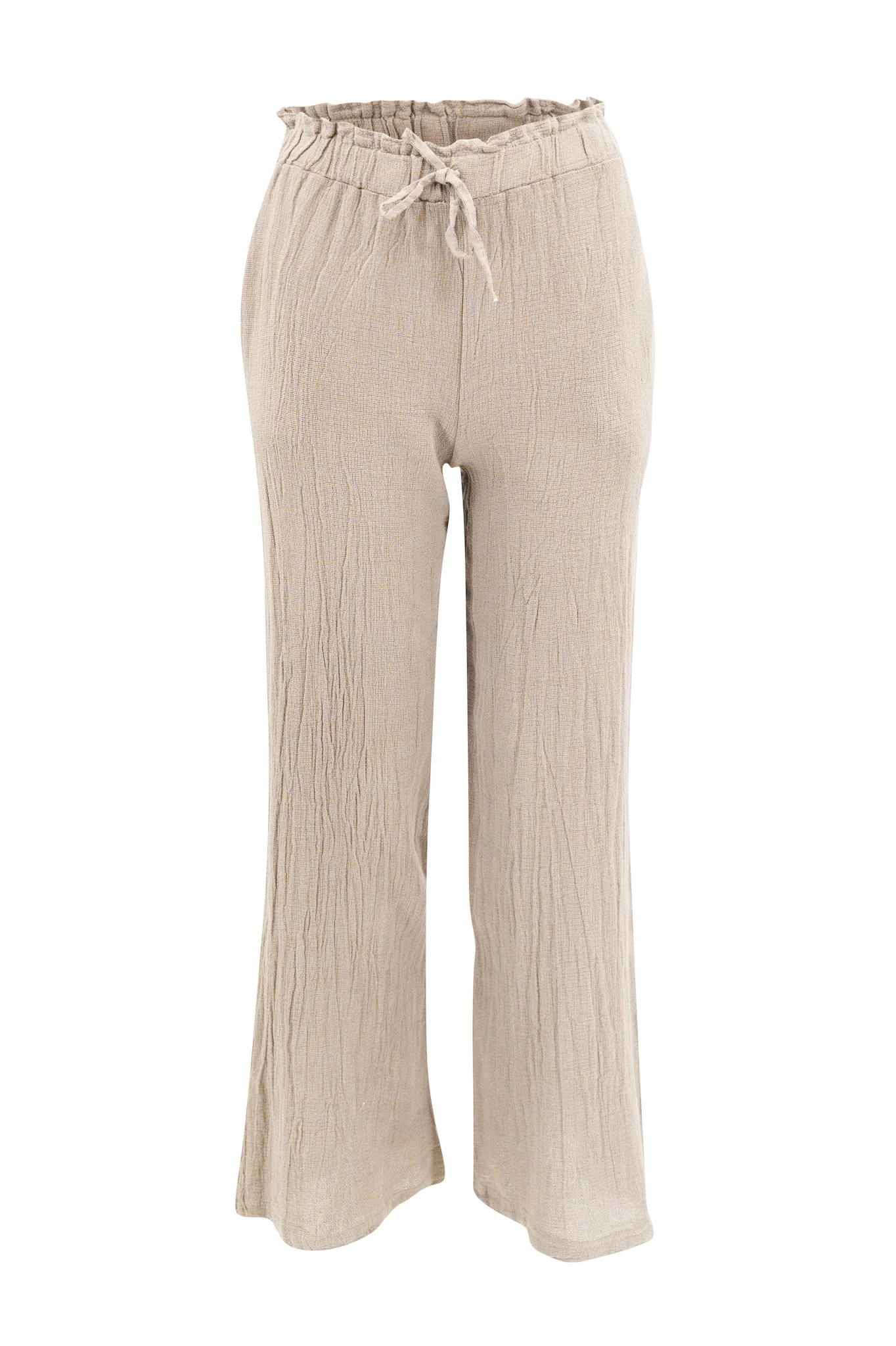 Creëer jouw ultieme zomerse look met de Pantalon Zora Sand in de kleur sand. Heeft een elastische band bij de taille, Wijde pijpen, Heeft steekzakken, Fijne kwaliteit linnen sto Laat de zomer maar komen – jij bent er klaar voor.