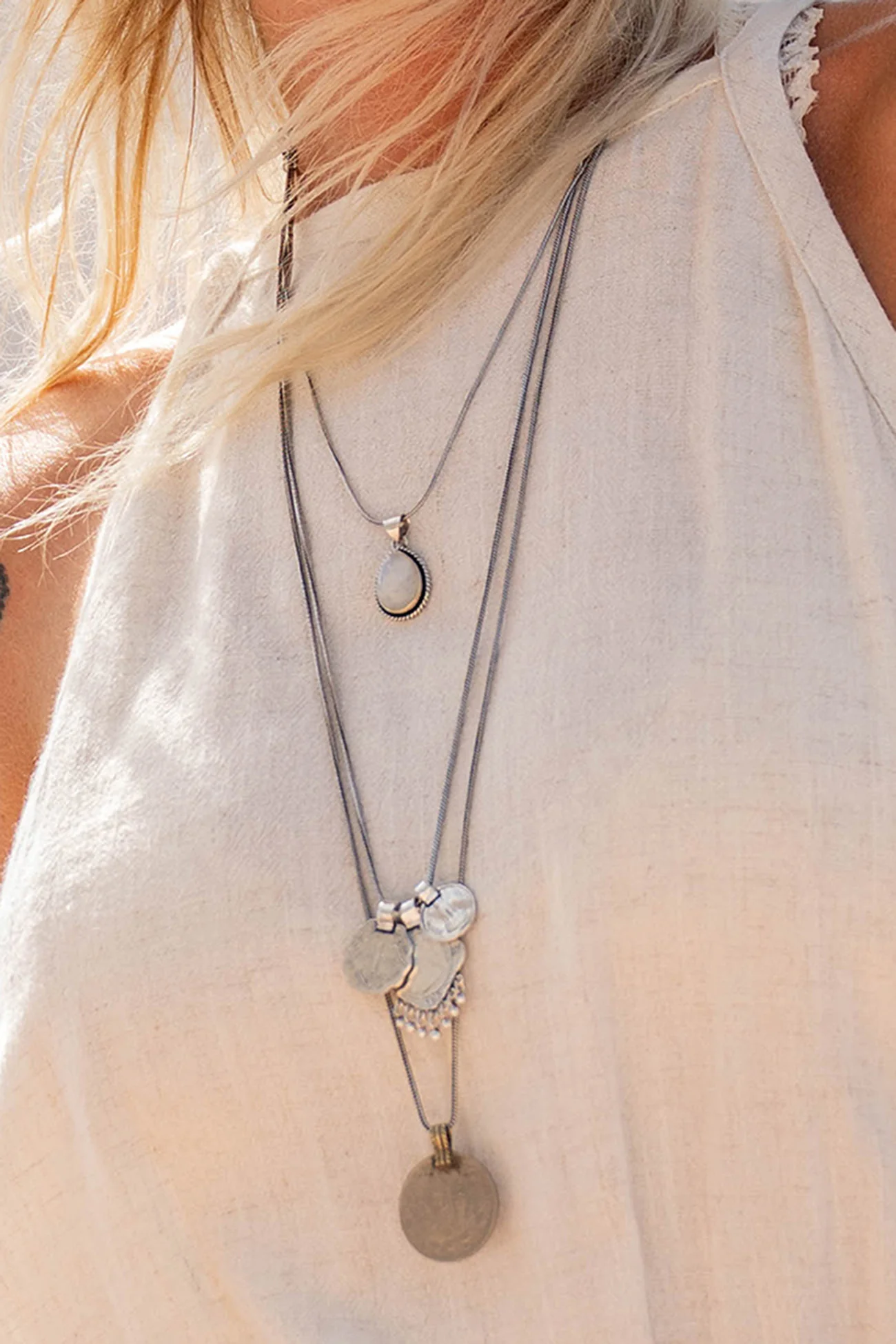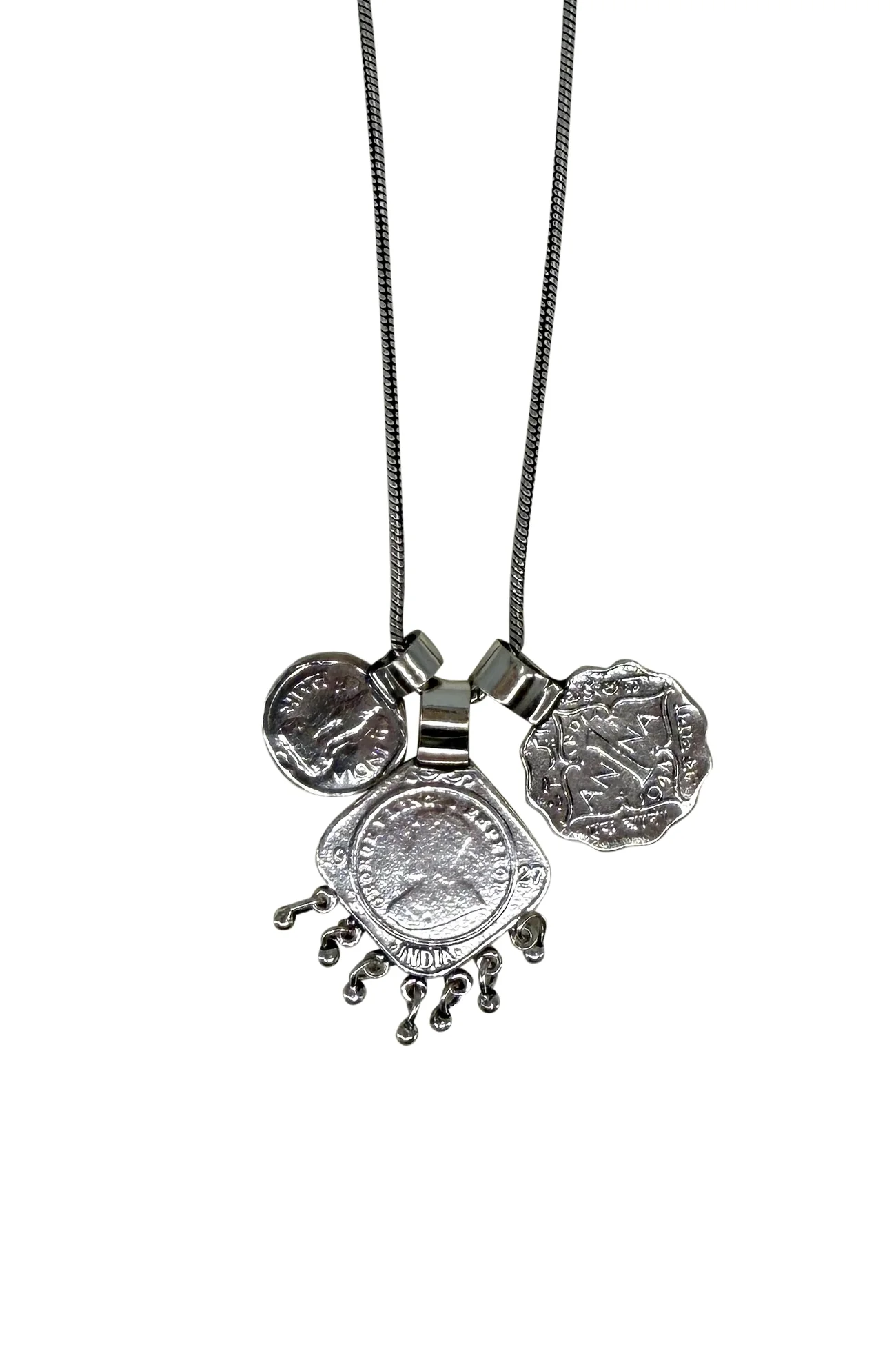 Voeg een vleugje elegantie toe aan elke outfit met onze Rosey Triple Coin Necklace. Dit prachtige accessoire van 70cm heeft drie delicate munten hangend aan een fijn kettinkje, waardoor het een chique en verfijnde uitstraling geeft. Perfect voor elk seizoen, deze ketting is de perfecte toevoeging aan je sieradencollectie en zal zeker een essentieel stuk worden in je garderobe. Verhoog je stijl met de Rosey Triple Coin Necklace.