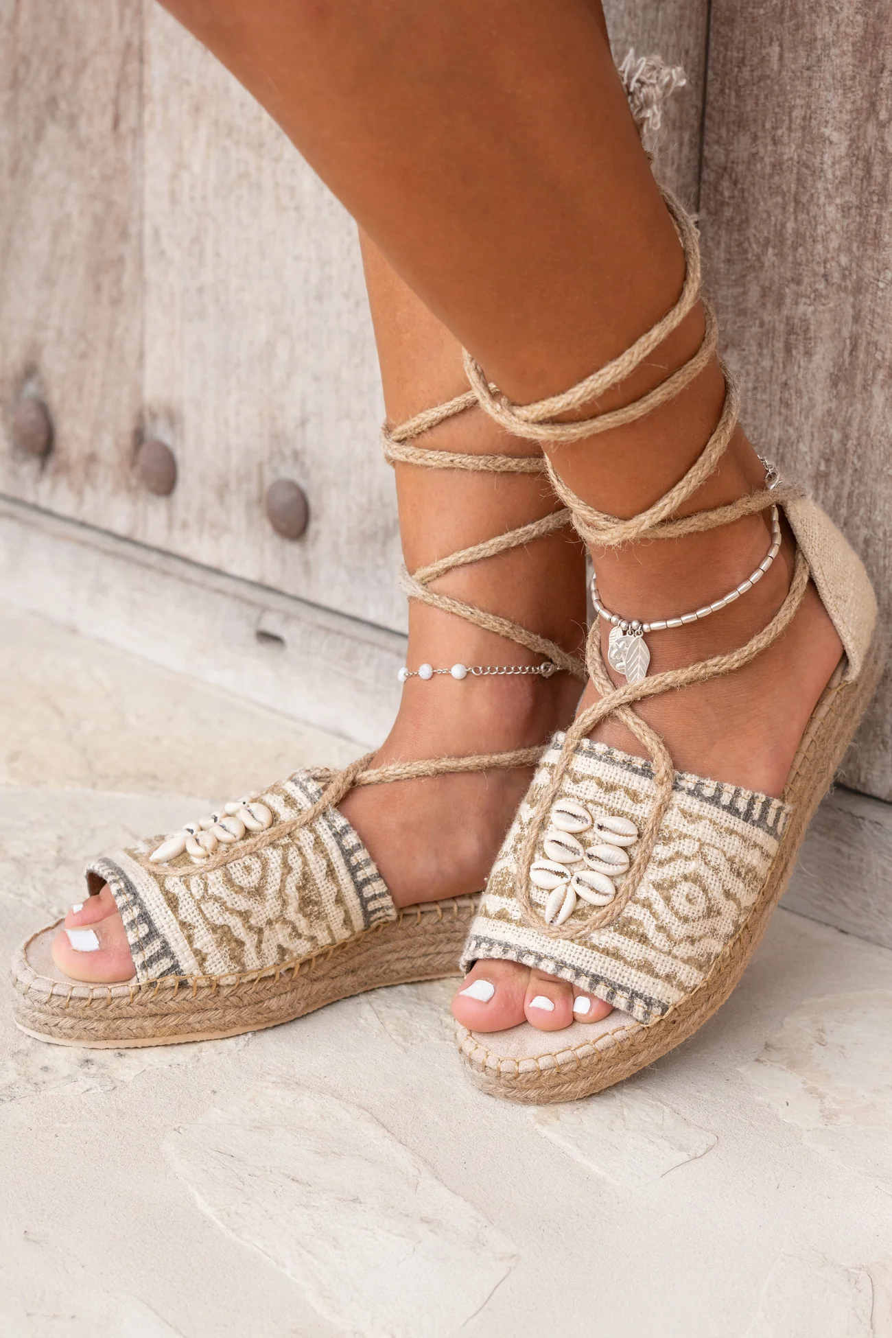 Op zoek naar een item met bohemian flair? Dan is de Sandal Bali Ivory van ibzmode jouw match. Sandalen met handgestempelde details en schelpen, te strikken rond de enkels Laat de zomer maar komen – jij bent er klaar voor.