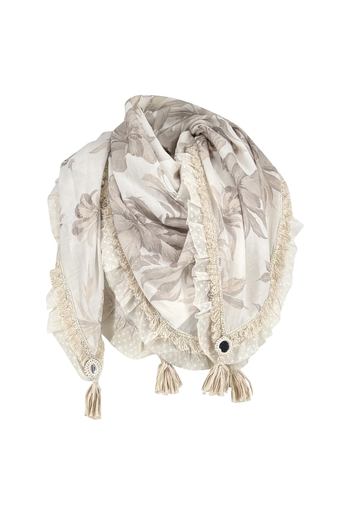 De Scarf Estilo Coralia Ivory is een romantische dames sjaal binnen de Bohemian Bloom collectie. De bloemenprint op een zachte ivory basis geeft deze dames sjaal een vrouwelijke en elegante uitstraling.