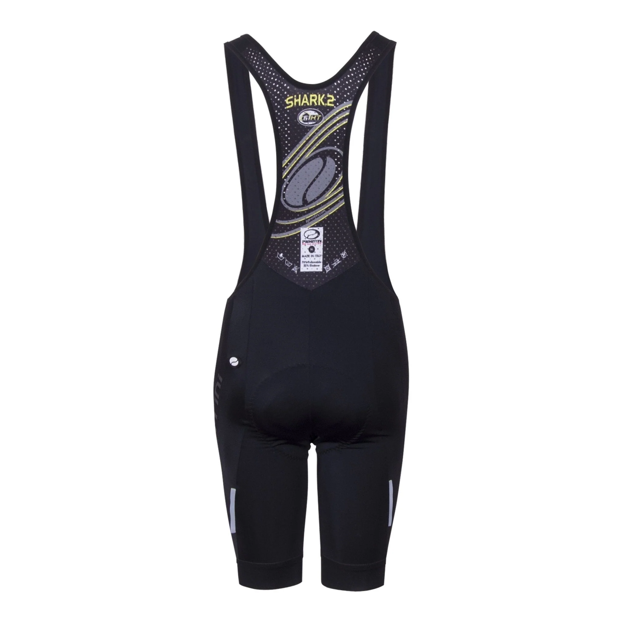 De Shark.2 is de broek voor renners die niet de hele dag diep in de beugels hangen. De bretellen zijn iets minder strak afgesteld als bij bijvoorbeeld de Tiger.2, waardoor het de ideale ondersteuning bied wanneer je graag met je handen op het stuur fietst. De C6-HT Elastic Carbon zeem geeft je een zeer hoge comfort, heeft antibacteriële eigenschappen, geeft je een perfecte ondersteuning en droogt snel. De Shark.2 behoort tot de best verkochte broeken van Parentini.