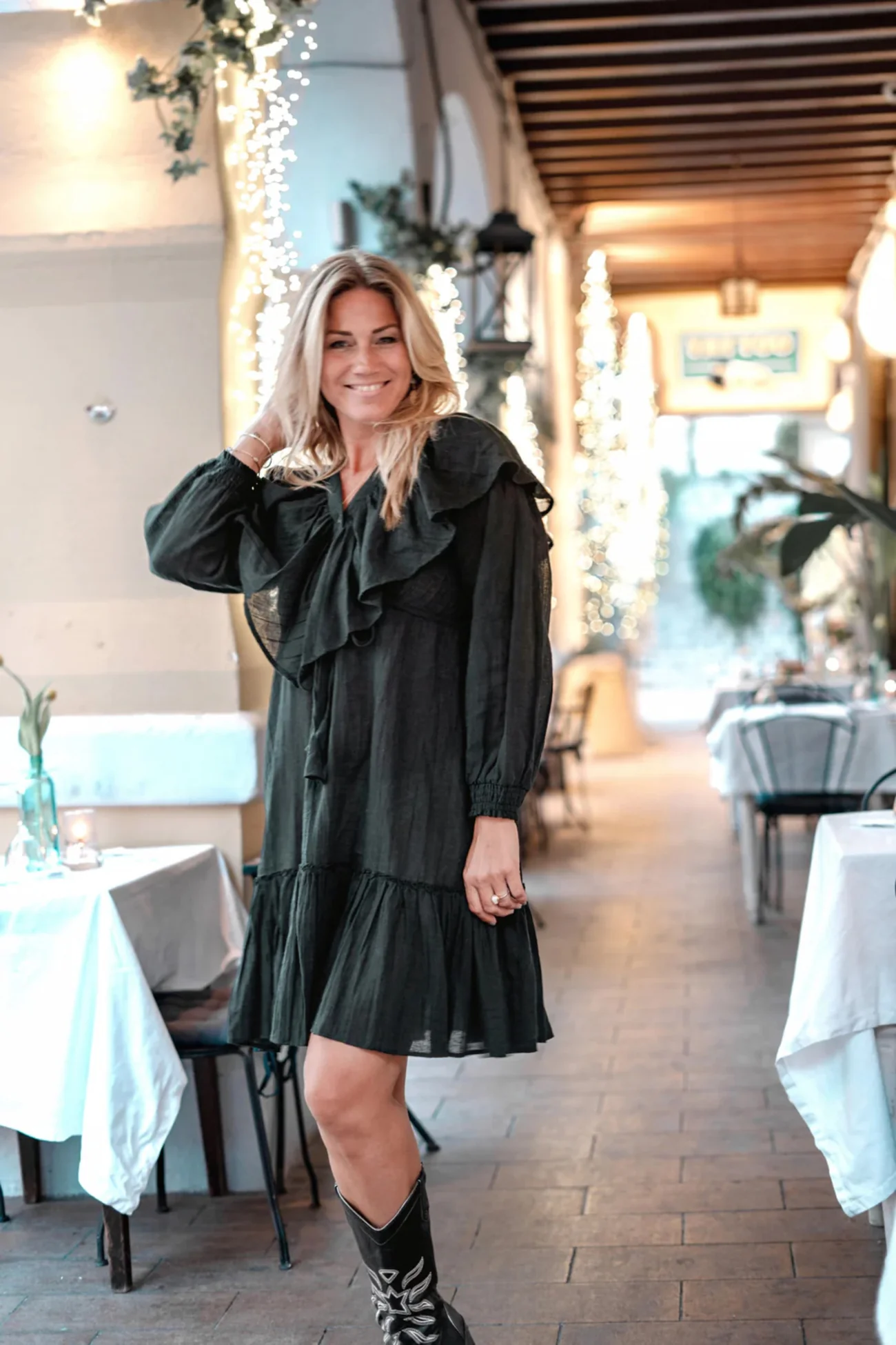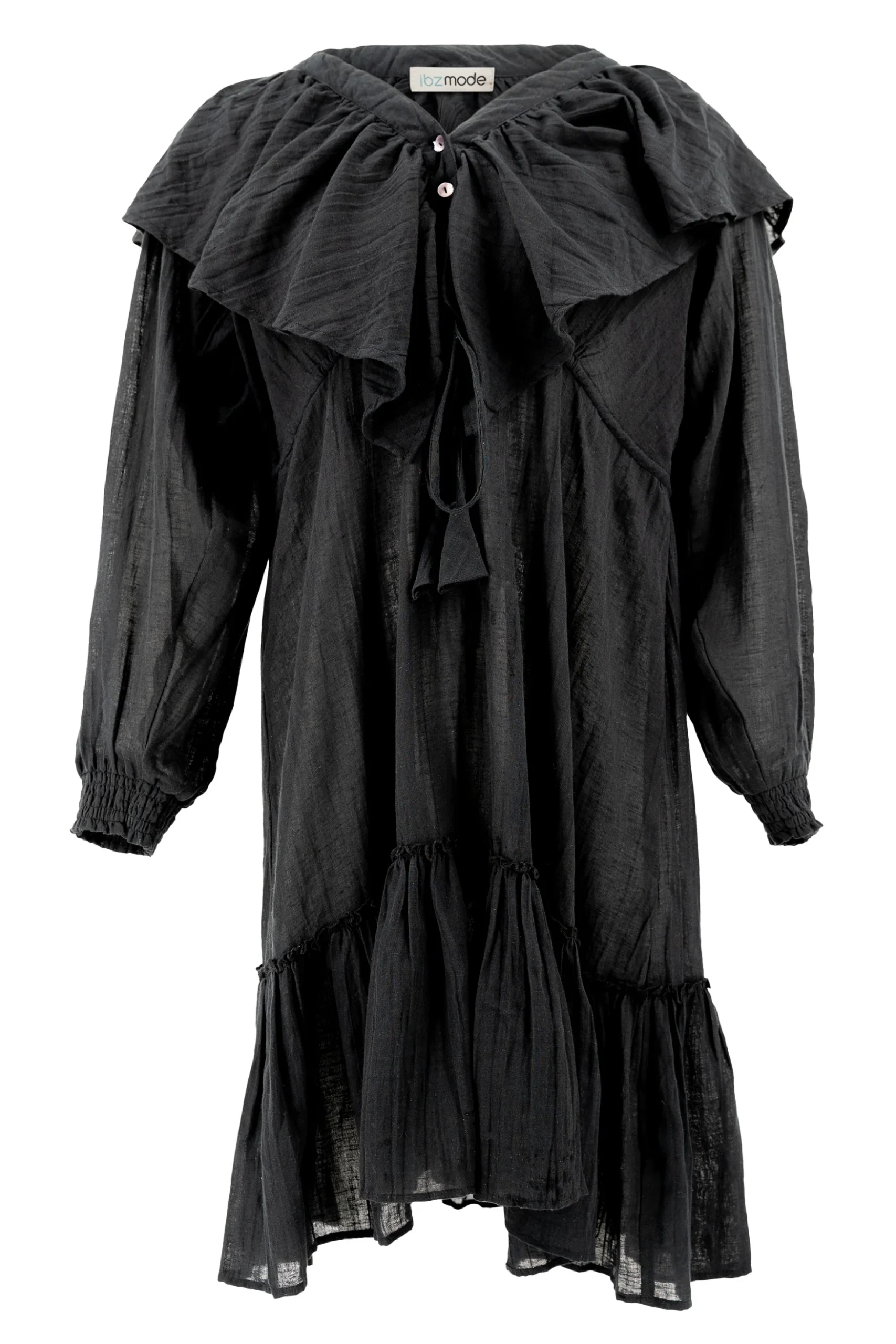 Geef jouw garderobe een update met de Short Dress Ruffle Sparkle Black, ontworpen voor zonnige dagen. Heeft een V-hals, Knoopjes op de buste, Elastische mouwbanden, Verstelbare taille, Ruches Perfect te combineren met slippers, een basic top of een lichte blouse. Shop nu bij ibizamode en straal deze zomer in stijl.