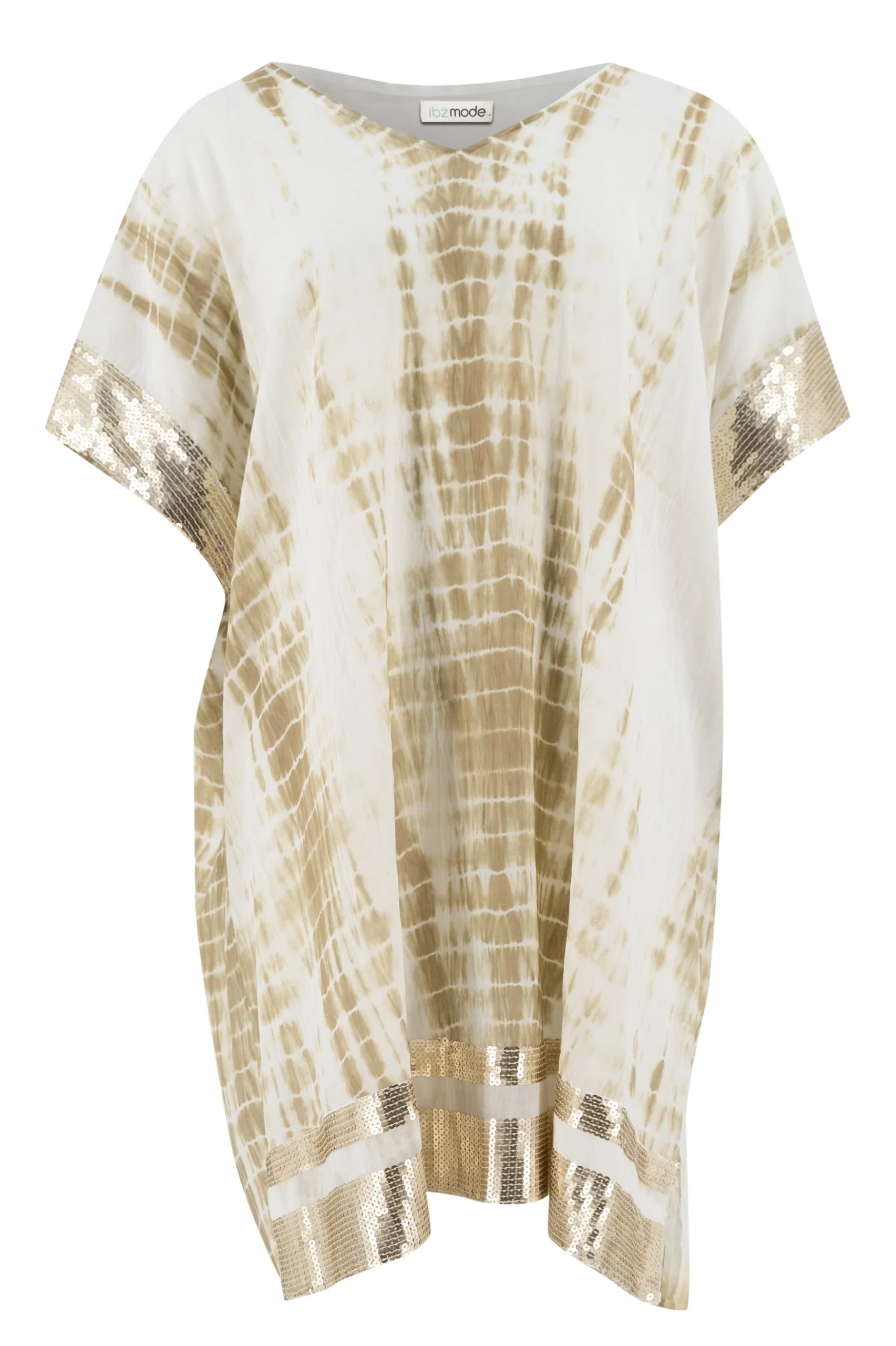Op zoek naar een item met bohemian flair? Dan is de Short Kaftan Jada White/ Taupe van ibzmode jouw match. Heeft een V-hals, tie-dye print, perfect voor over je bikini of badpak, draagt luchtig, droogt snel, Gemaakt van 100% katoen, licht en comfortabel voor warme dagen. Bestel snel en geniet van de bohemian lifestyle, elke dag opnieuw.
