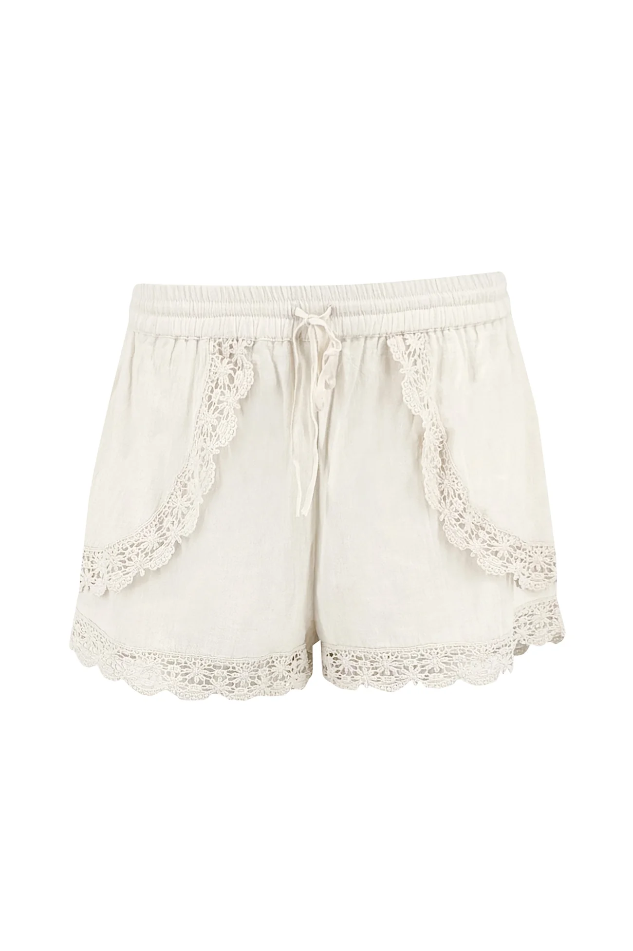 De taille van Short Sancia Ellis Ivory valt comfortabel en sluit mooi aan zonder strak te zitten. De pijpen hebben een soepele fit, zodat je vrij kunt bewegen. Langs de onderkant loopt een baan met lace details. Dit geeft de short een vrouwelijke boho touch, precies passend bij de handcrafted sfeer van de collectie.