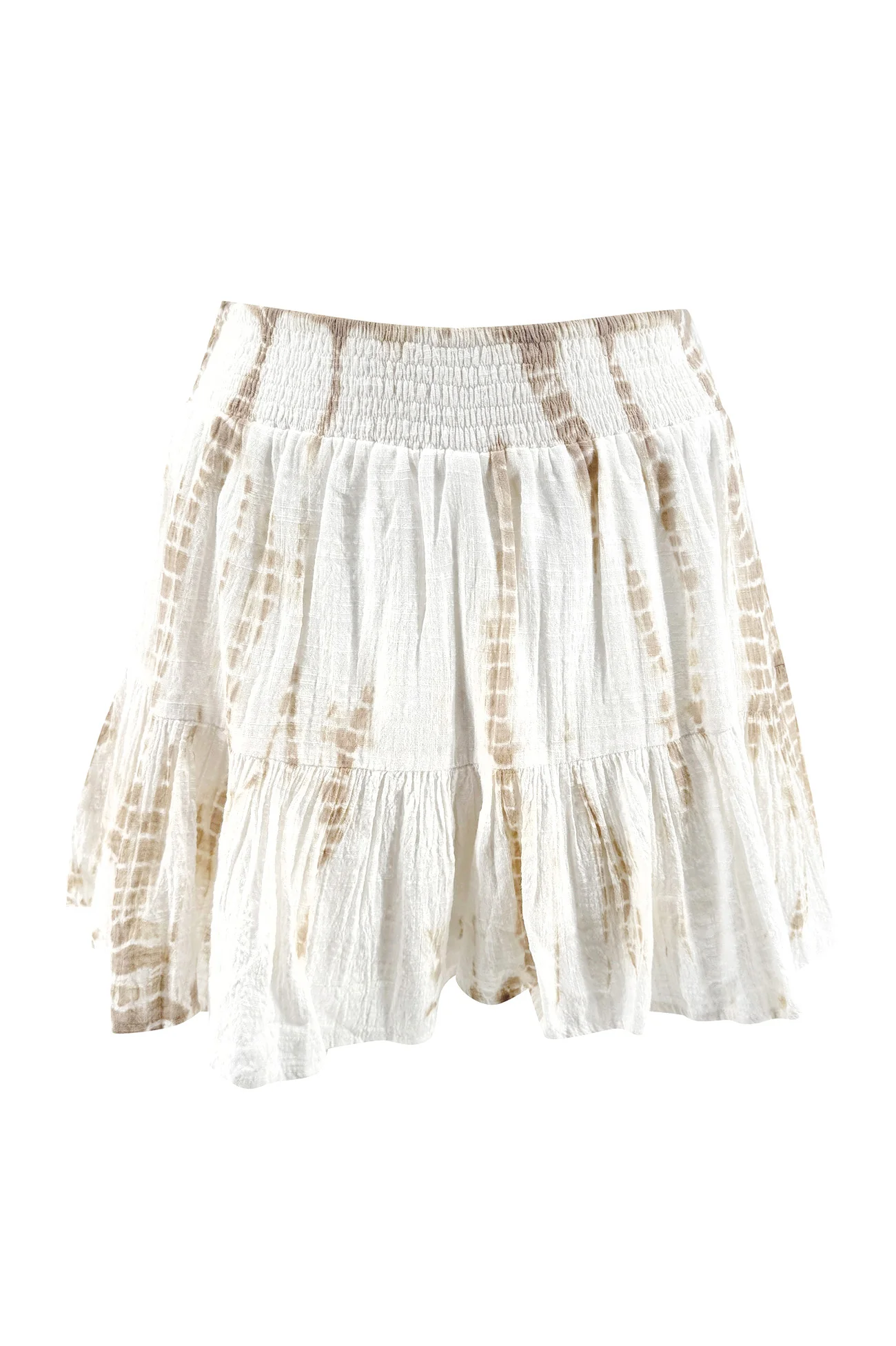 De Skort Dalina Sera is onderdeel van de Sand Stories collectie. Deze katoenen skort combineert het vrouwelijke silhouet van een rok met het comfort van een short. Daardoor voelt dit item direct praktisch én stijlvol aan. De organische tie-dye print in taupe en ivory geeft een rustige, luxe uitstraling die perfect past bij een ontspannen resort look.