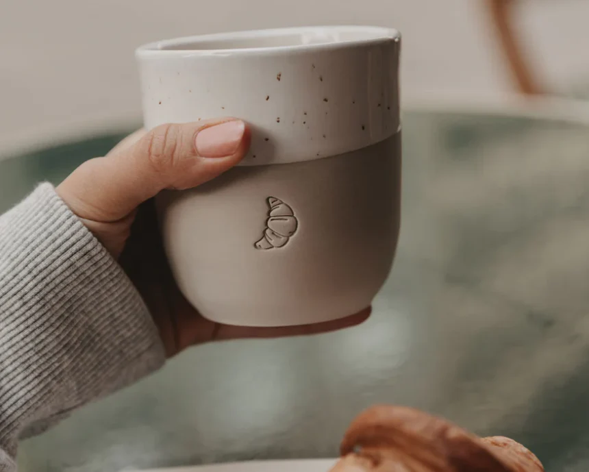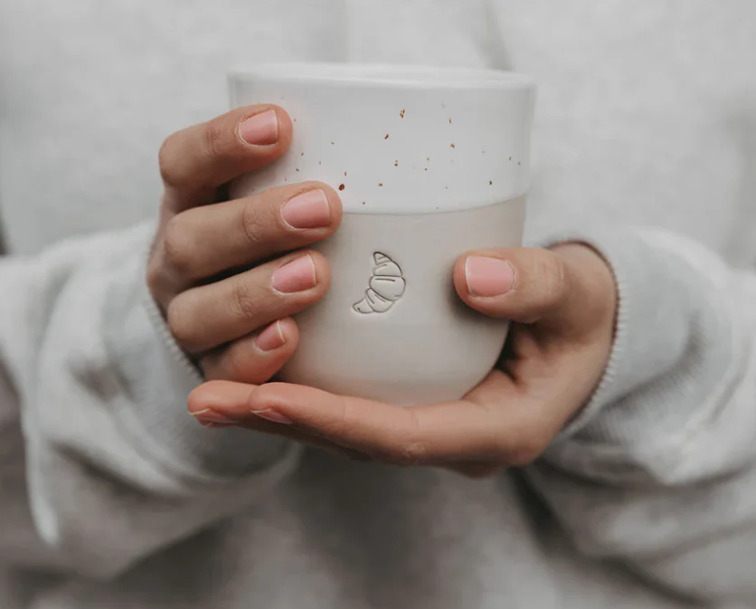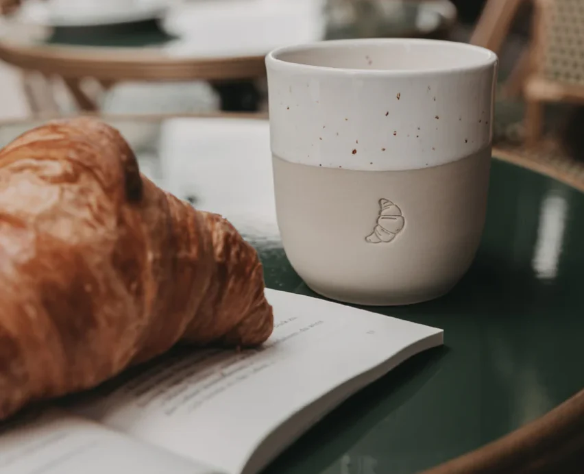 Deze exclusieve ambachtelijke en stevige mok is afgewerkt met een verfijnd blindreliëf in de vorm van een croissant. Een subtiele ode aan de kleine geneugten van het leven – zoals een dampende cappuccino en een knapperige croissant op een rustige ochtend. Of maak van je ontbijttafel elke dag een feest.