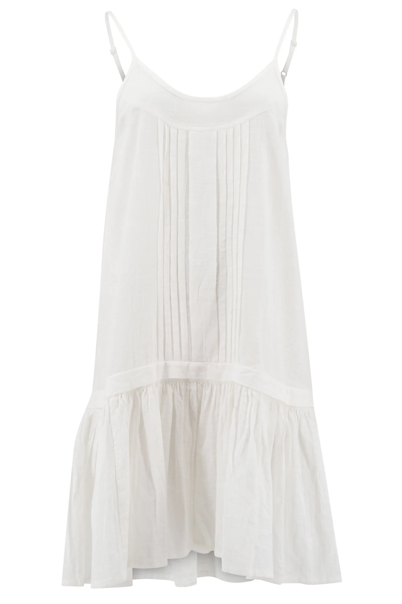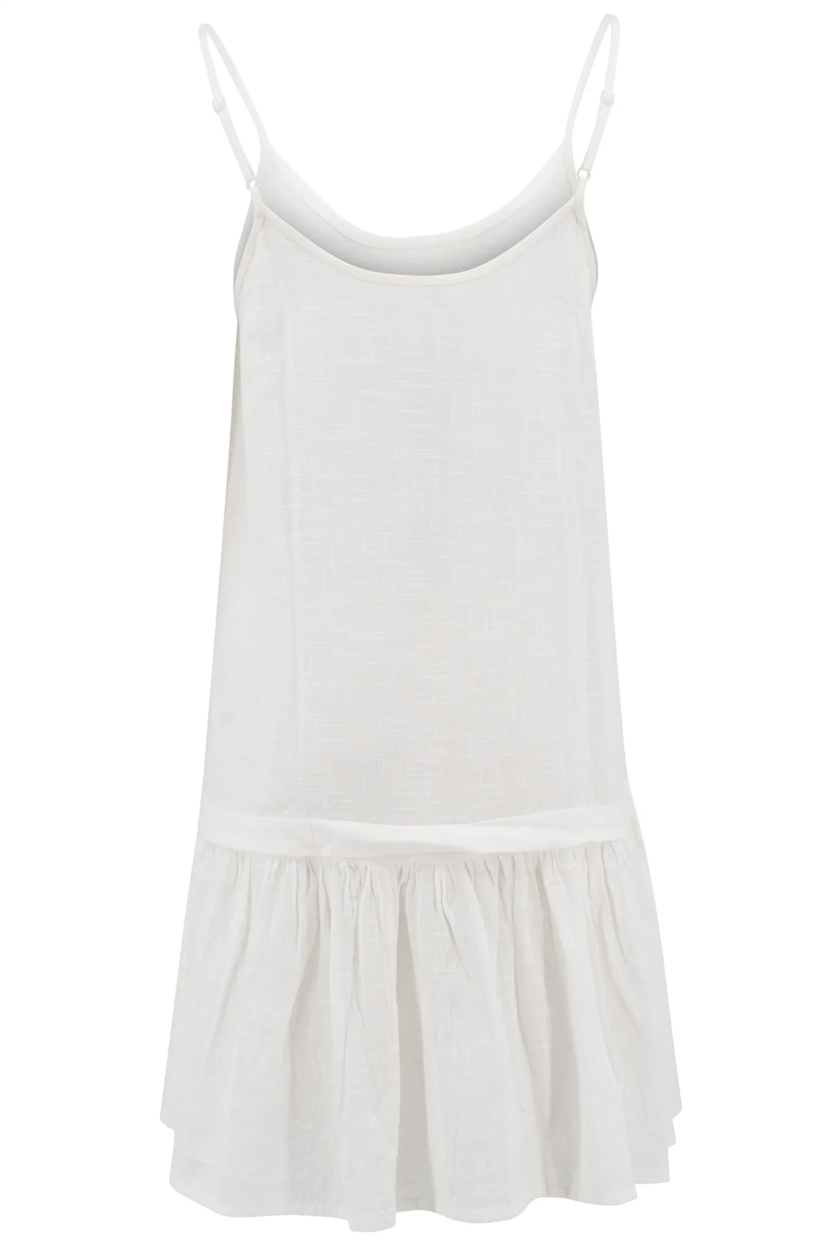 Met de Strap Dress Evelyn White van ibzmode ben je klaar voor elke summer getaway. Heeft een V-hals, verstelbare spaghetti bandjes, gemaakt van een fijne katoen kwaliteit, heerlijk lu Perfect te combineren met slippers, een basic top of een lichte blouse. Voeg deze must-have toe aan je zomergarderobe.