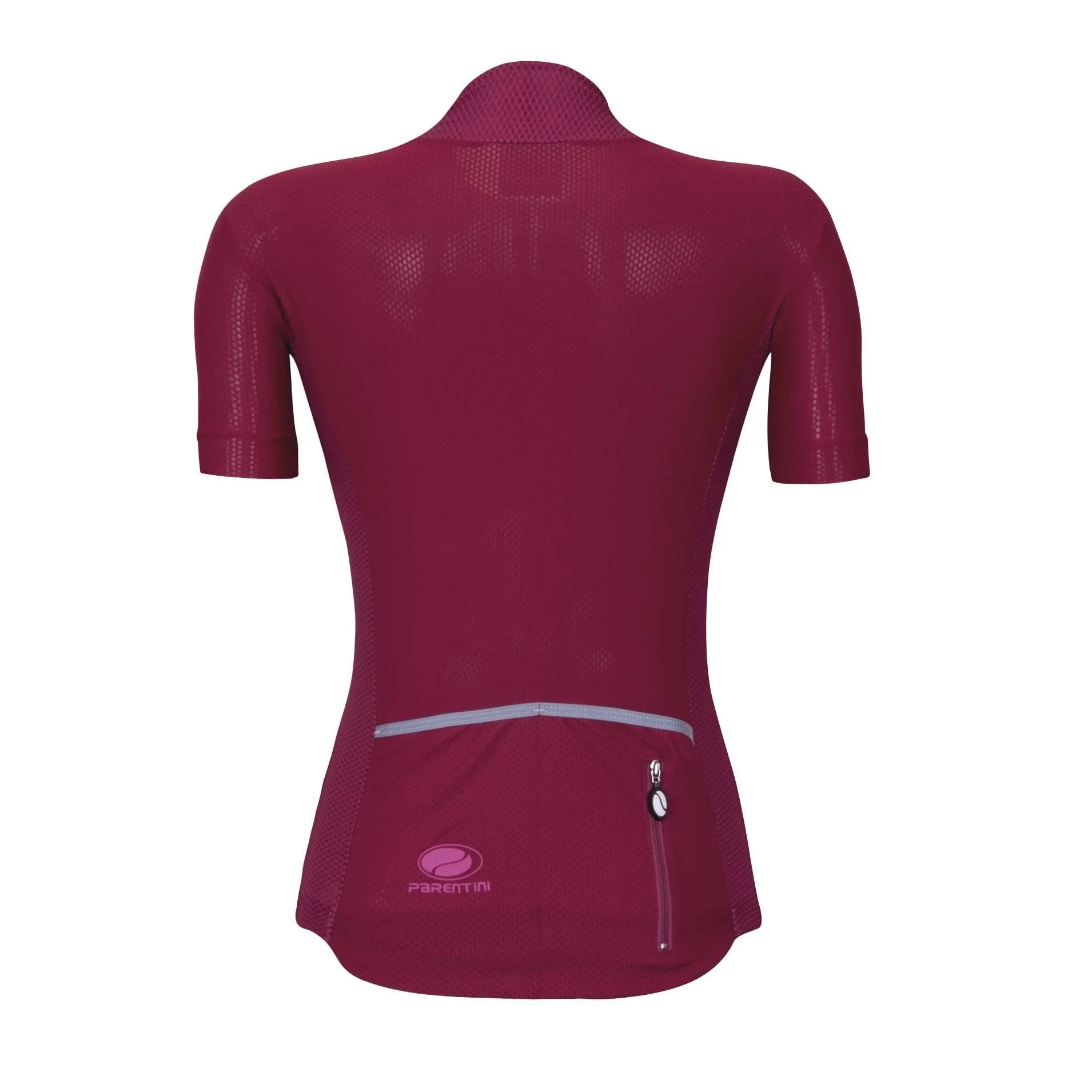 Parentini maakt al sinds 1976 op ambachtelijke wijze hoogwaarde fietskleding. Compromisloos, technisch en met een Italiaans oog voor detail. De prachtige bordeaux rode stof van deze Successo zorgt ervoor dat je er gesoigneerd bijfietst deze zomer.