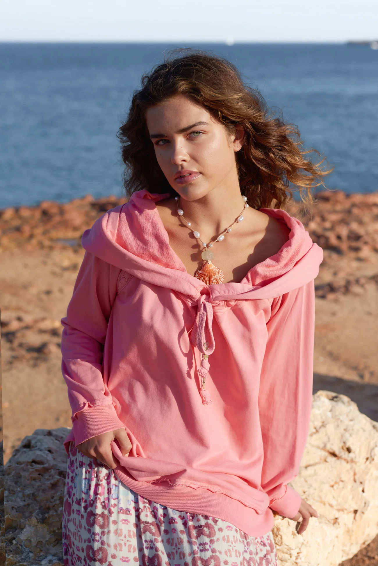 Met de Sweater Hoodie Formentera Pink van Isla Ibiza ben je klaar voor elke summer getaway. Trui met wijde hals en capuchon, koord door de hals die aangetrokken kan worden Het natuurlijke materiaal zorgt voor een luchtige feel. Bestel snel en geniet van de bohemian lifestyle, elke dag opnieuw.