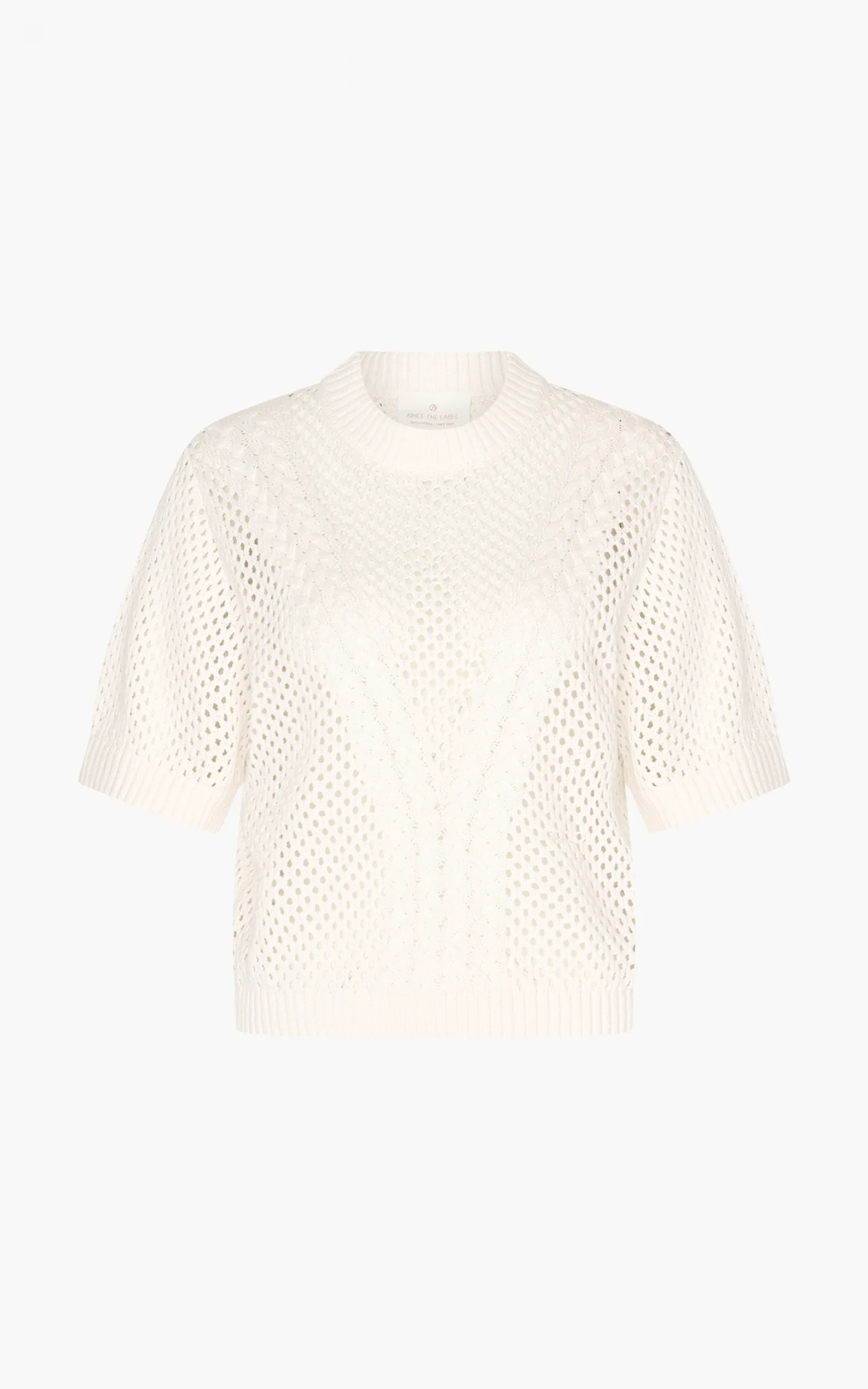Soms wil je gewoon een trui die nét even anders is. Sweater Kyara is precies dat. Deze knit heeft een opengewerkt patroon met speelse kabeldetails, waardoor hij luchtig en toch heerlijk knus is. De korte mouwen en de relaxte pasvorm maken ‘m perfect voor het tussenseizoen: fris genoeg voor de lente, maar warm genoeg om je comfy te voelen.