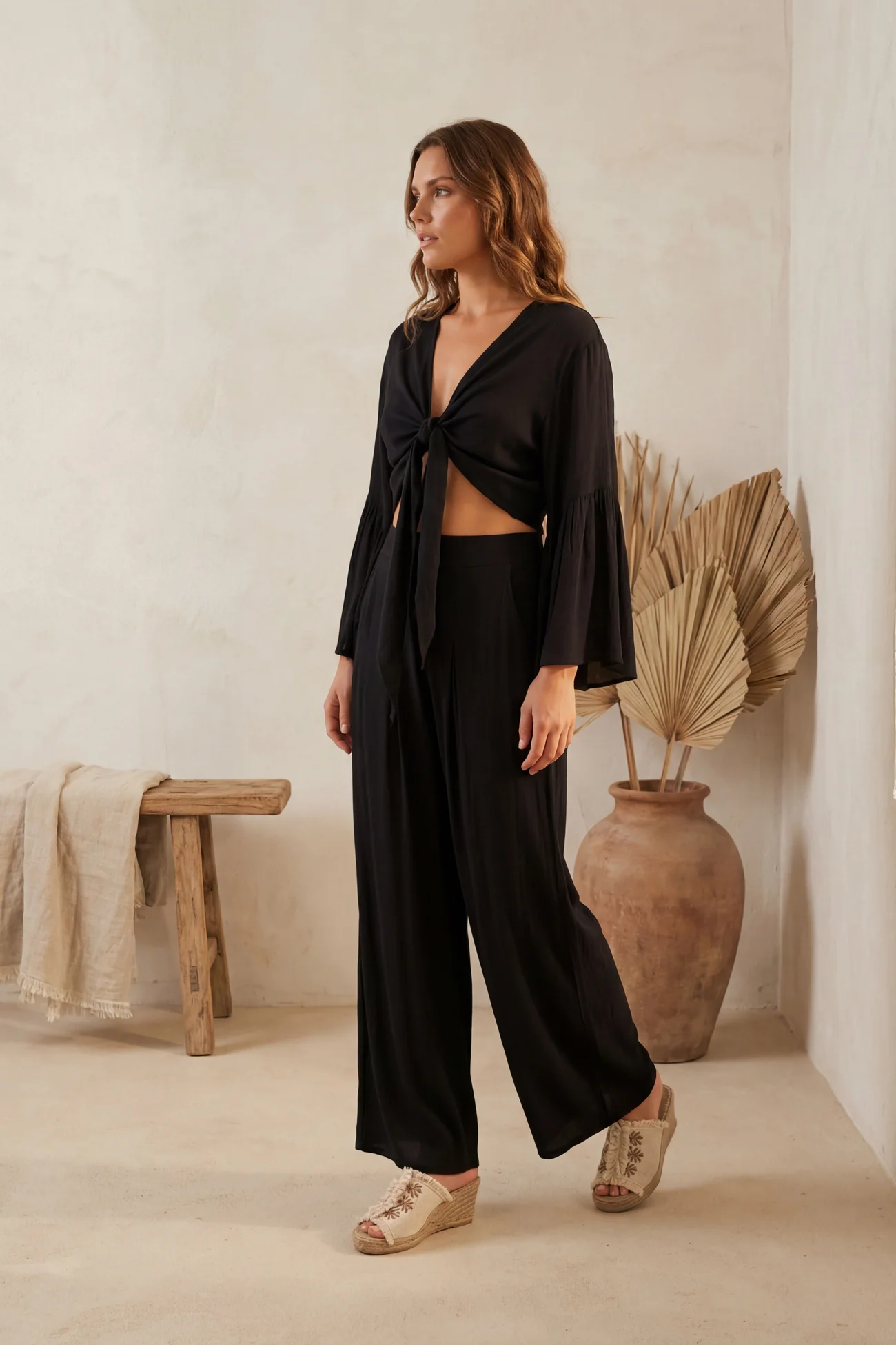 Eerst valt de pasvorm op, die relaxed is maar toch vrouwelijk blijft. De top volgt je silhouet zonder strak te zitten. Daardoor beweeg je makkelijk en oog je toch verzorgd. Dit sluit goed aan bij Ibiza basics en bohemian essentials. Top Marcia Black voelt puur, luchtig en comfortabel, precies zoals je van een plain collectie item verwacht.
