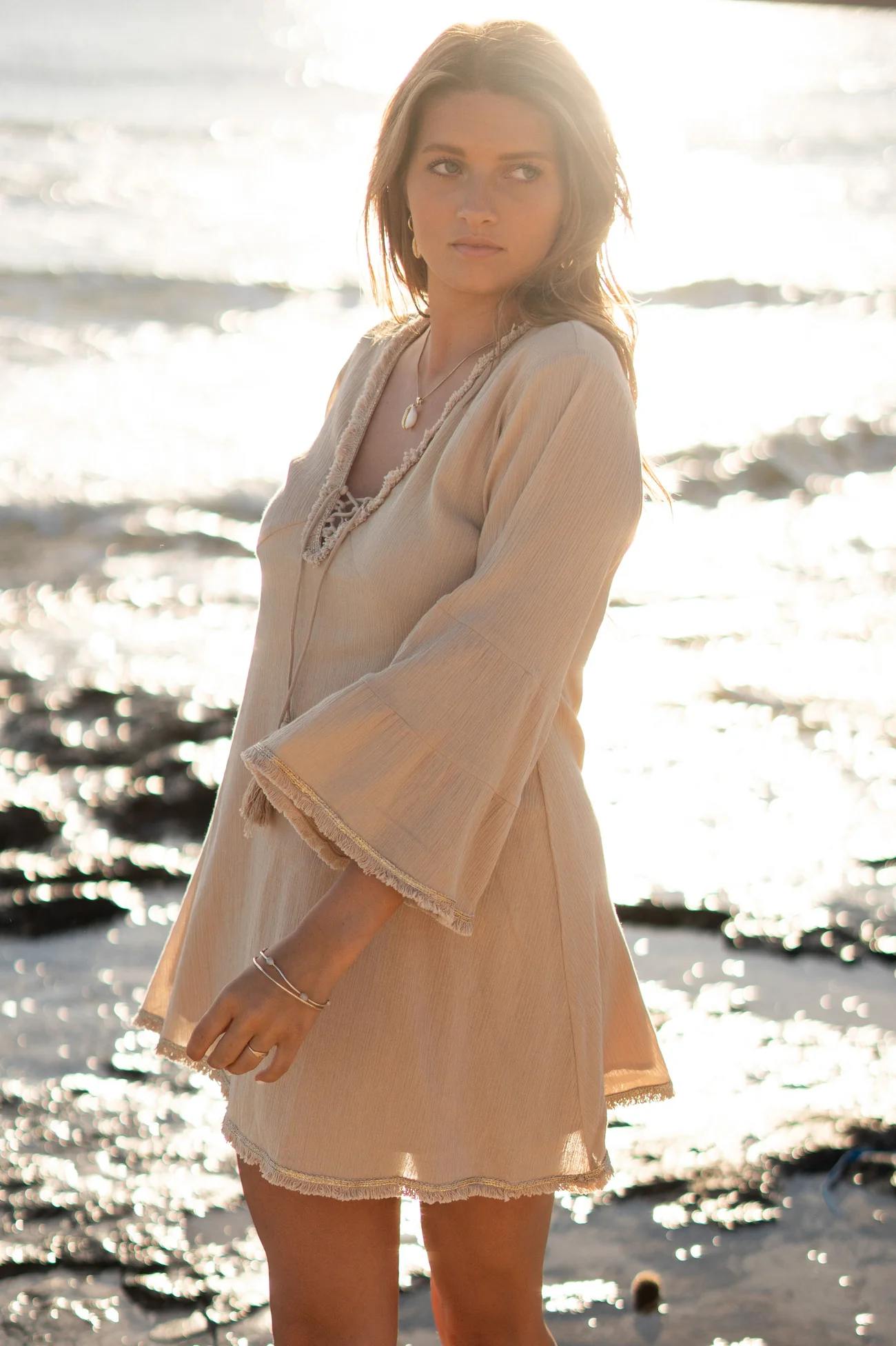 Met de Tunic Bonita Nyx Sand van ibzmode ben je klaar voor elke summer getaway. Heeft een geveterde V-hals, touwtjes met kwastjes, bezet met franjeband en lurex garen, elastische b Het natuurlijke materiaal zorgt voor een luchtige feel. Laat de zomer maar komen – jij bent er klaar voor.