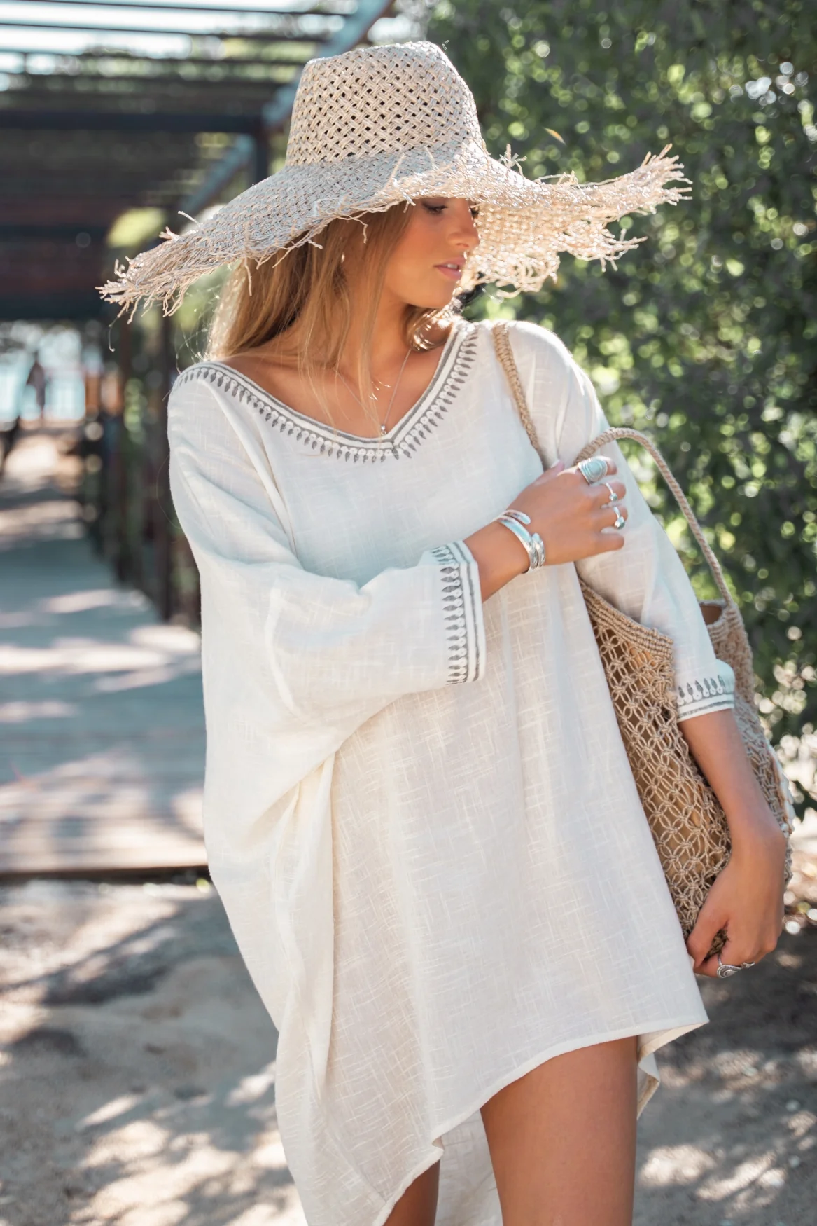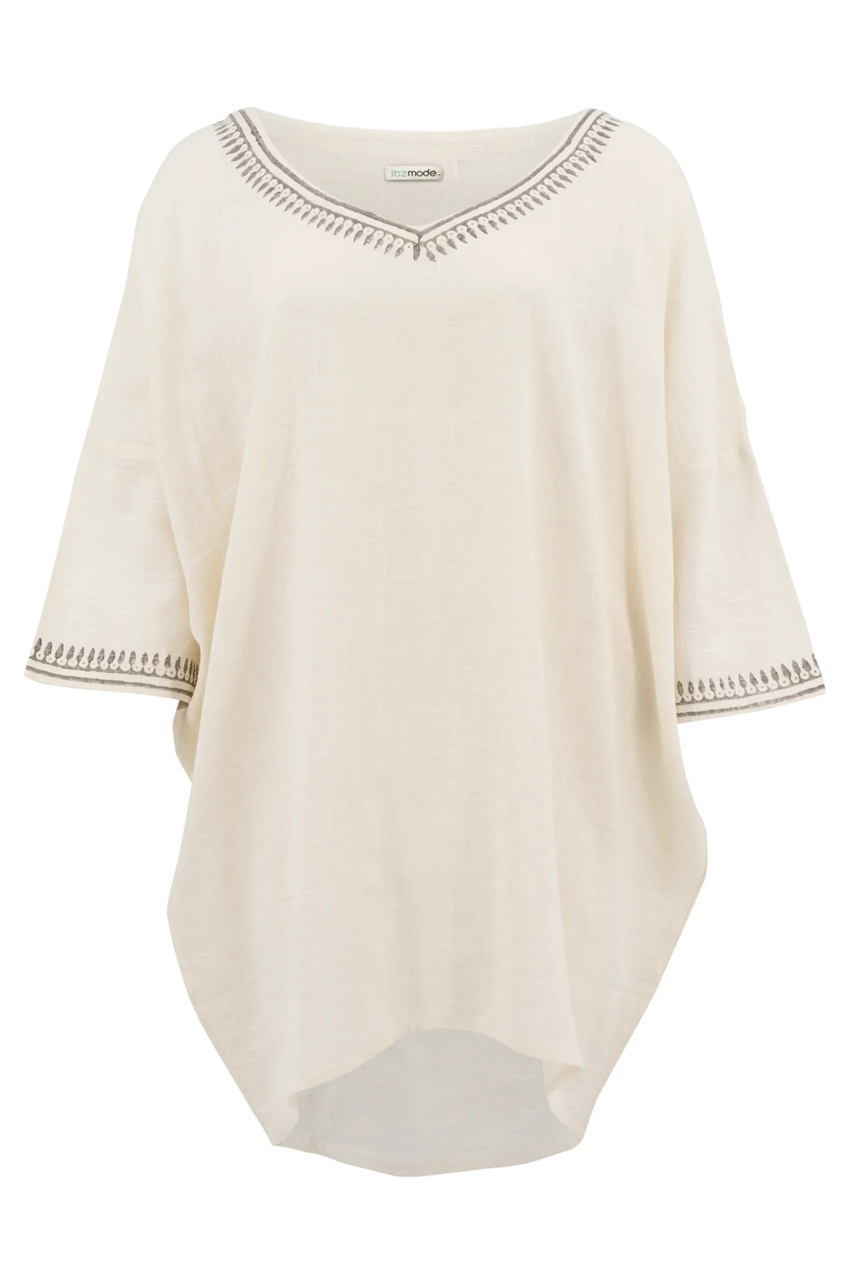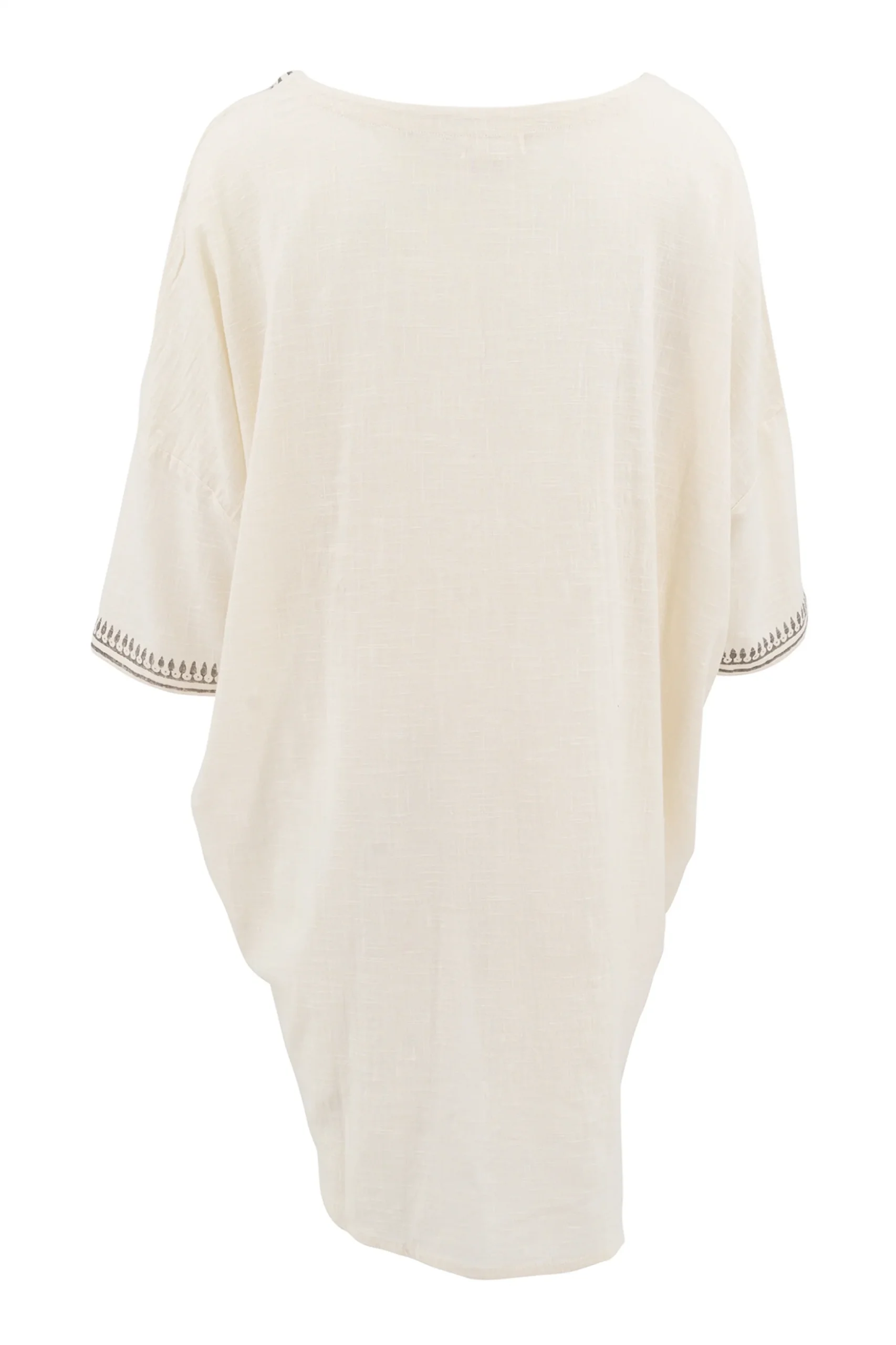 Deze Tunic Emilia Resort Ivory van ibzmode in het ivory ademt Ibiza vibes. Heeft een V-hals, half lange mouwen, gemaakt van een luchtige stof, valt aan de voorkant korter, hee De luchtige stof voelt zacht aan op je huid. Bestel snel en geniet van de bohemian lifestyle, elke dag opnieuw.