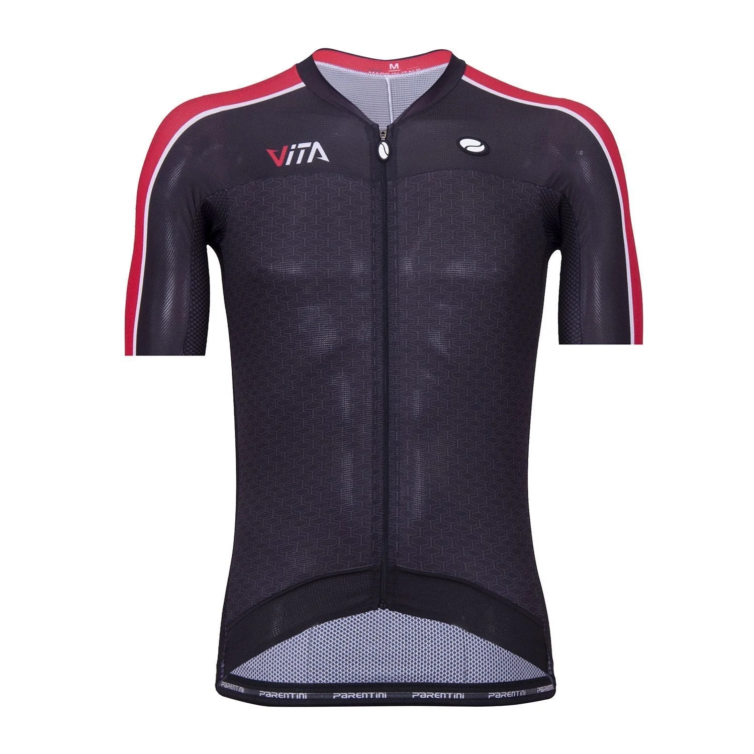 De Vita Nova is het nieuwste shirt van Parentini uit de professionele lijn. Het is een extreem technisch shirt met zeer hoge elasticiteit. Hierdoor zit het als een tweede huid op je lichaam. Het ogenschijnlijk rustige design is tot op het kleinste detail prachtig afgewerkt. Van de subtiele print op het lichaam tot de mesh onder de armen. Dit is een shirt voor mensen die het maximale uit zichzelf willen halen. Sneldrogend, aerodynamisch en superlicht. De Vita Nova laat je niet in de steek deze zomer.