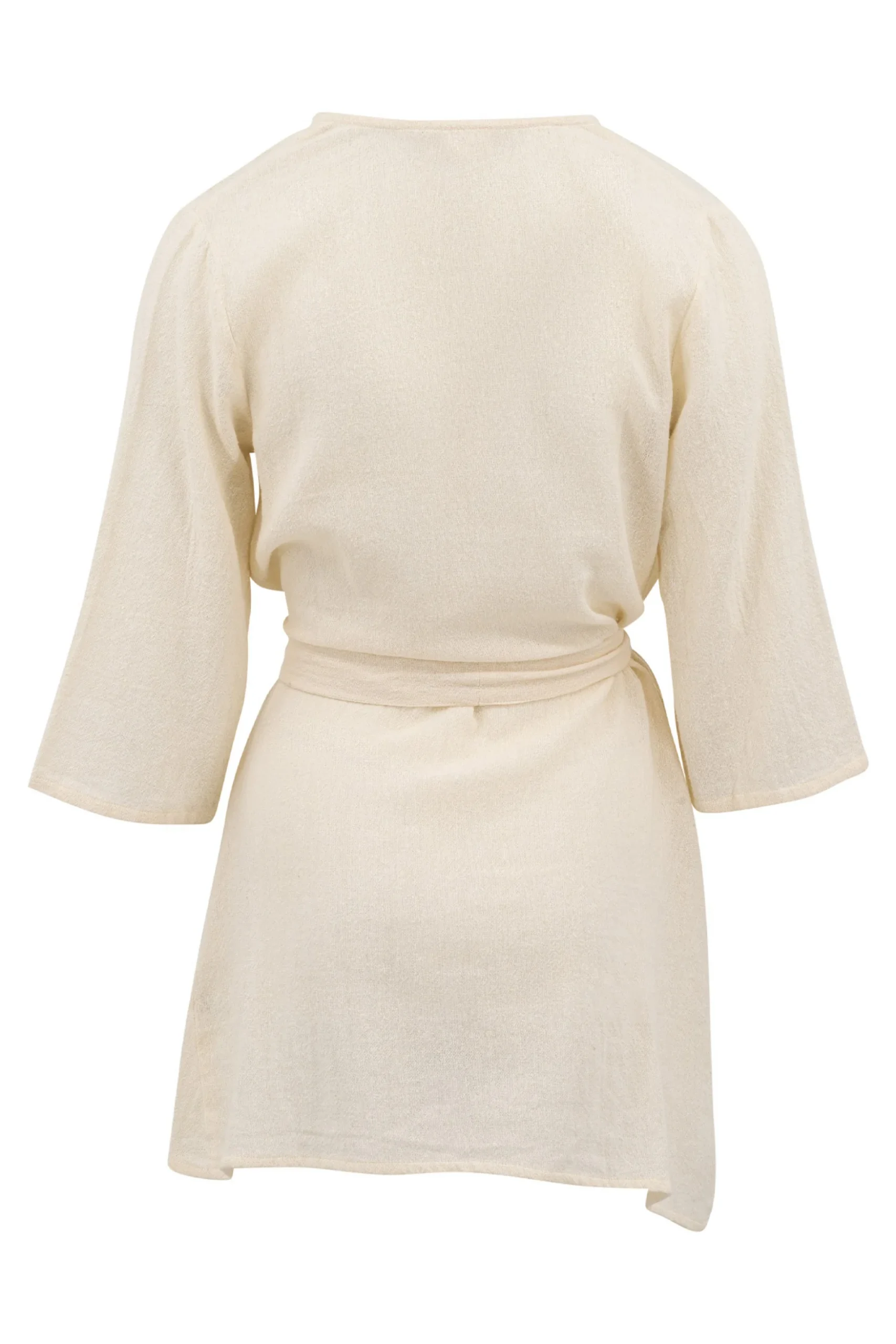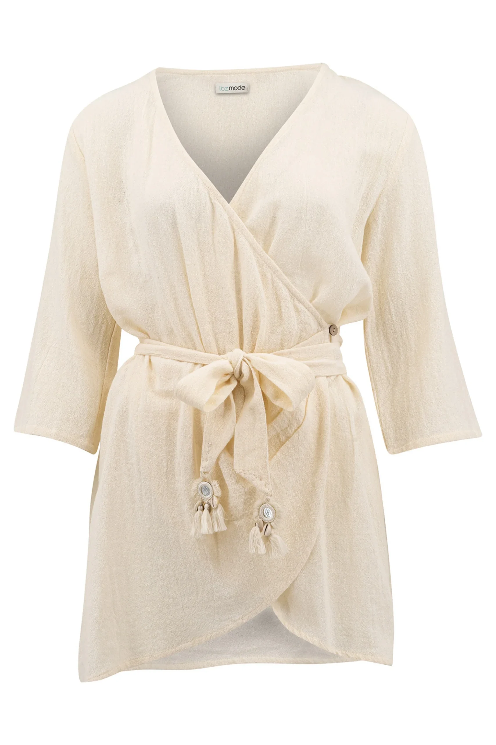 Geef jouw garderobe een update met de Wrap Dress Deya Ivory, ontworpen voor zonnige dagen. Heeft een diepe V-hals, kan aan de zijkant geknoopt worden, kan met en zonder riempje met kwastjes, Het natuurlijke materiaal zorgt voor een luchtige feel. Shop nu bij ibizamode en straal deze zomer in stijl.